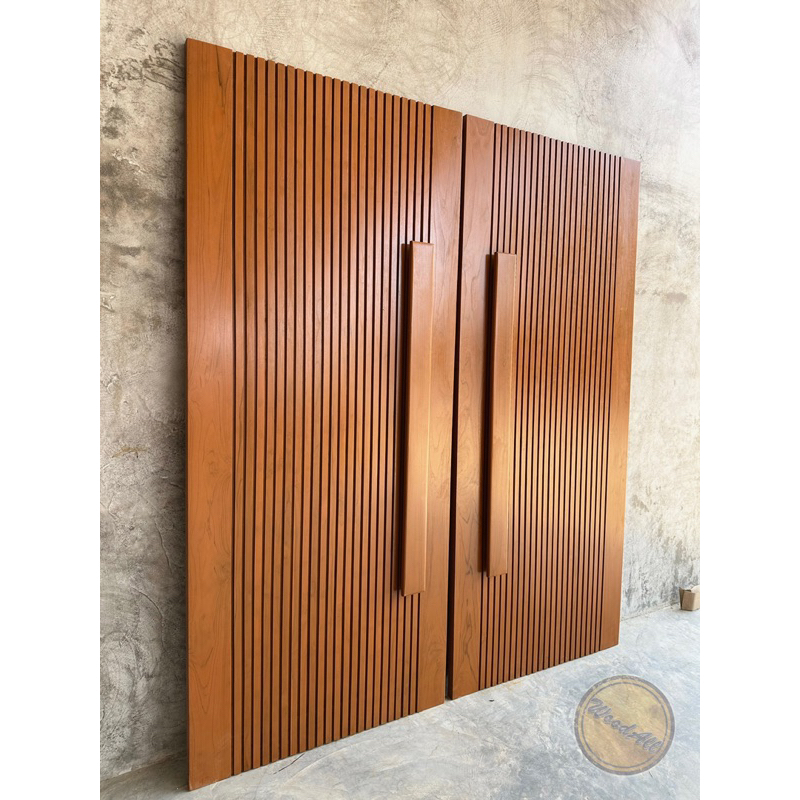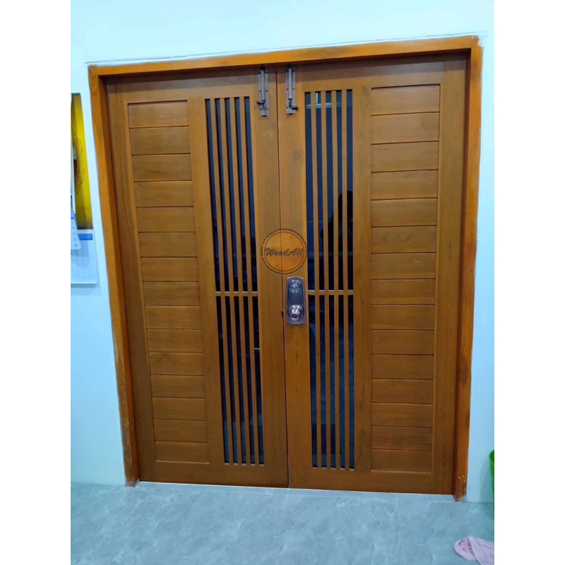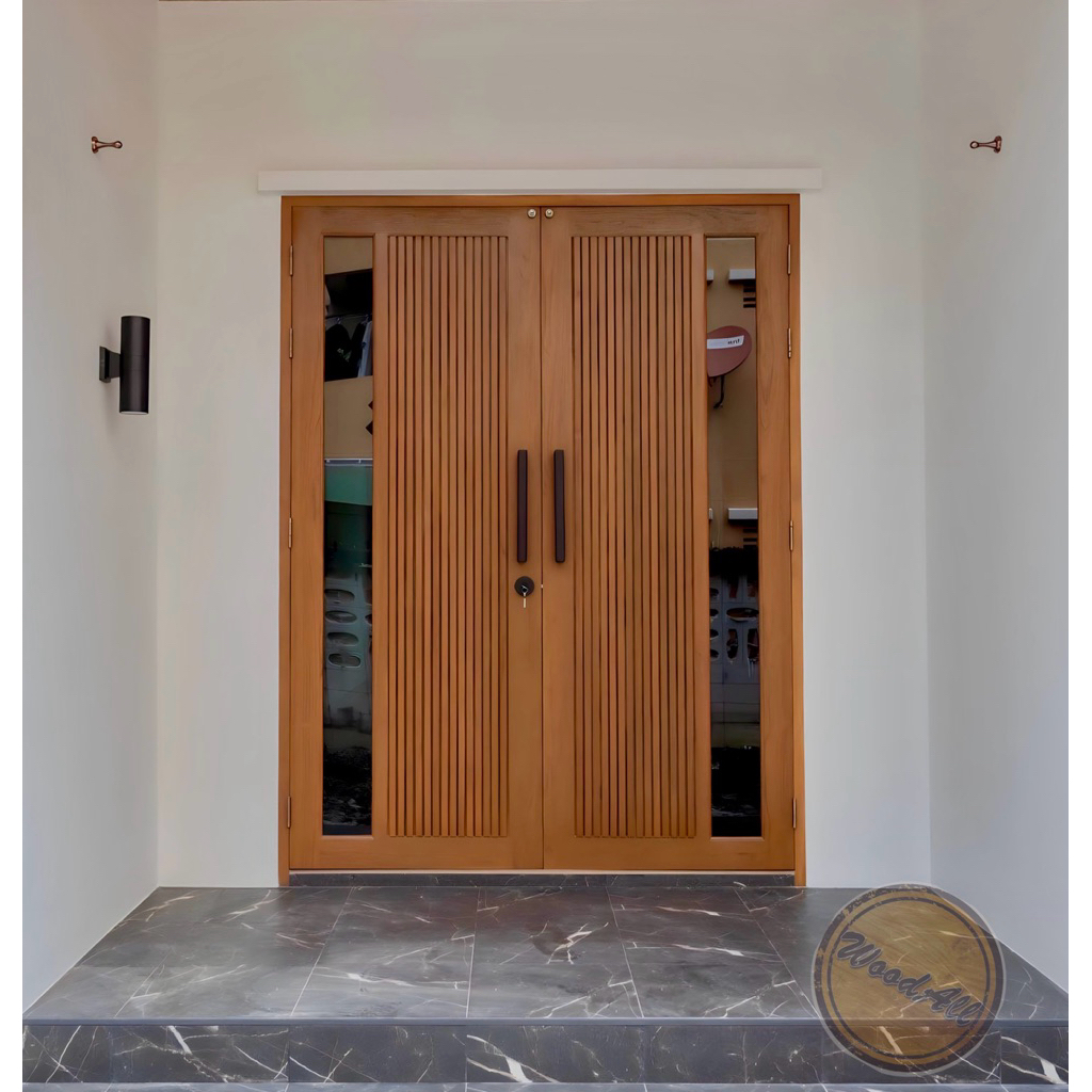 🔥ประตูไม้สักทองโมเดิร์นบานคู่🔥ส่งฟรี‼️ระบุสีผ่านแชท💥