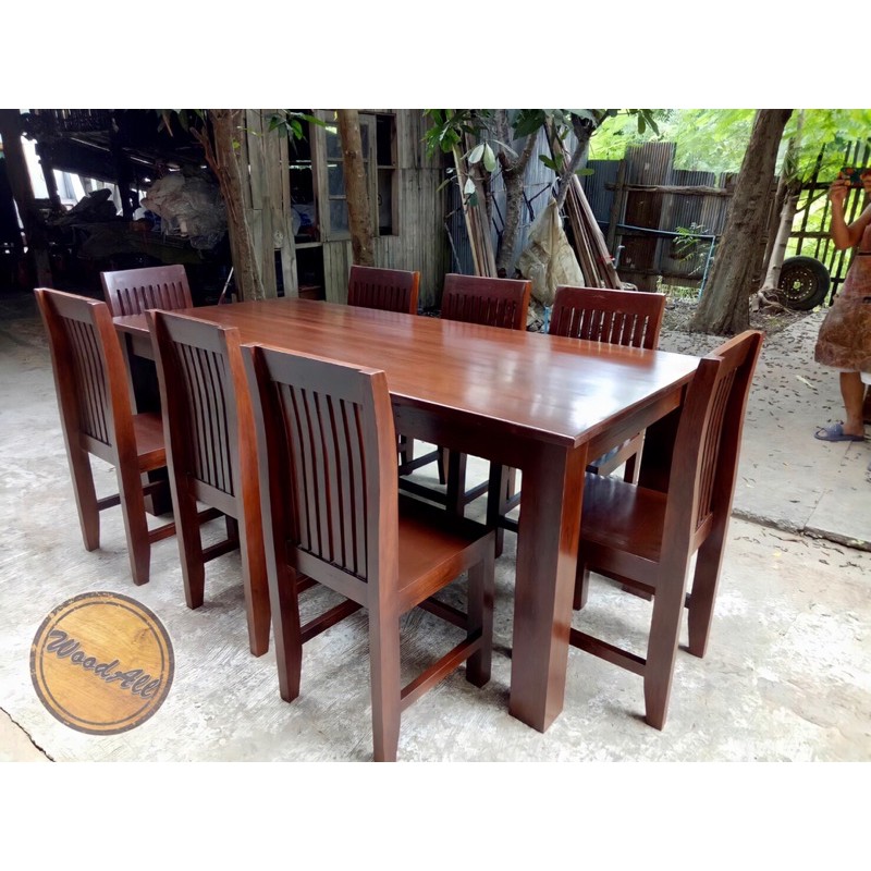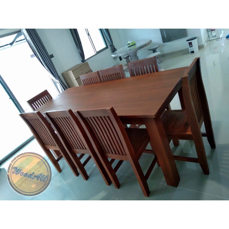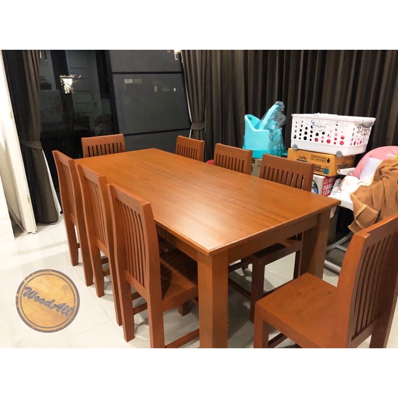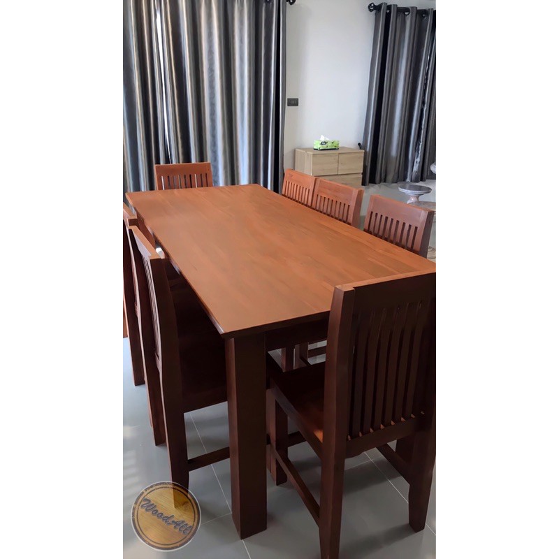 🔥โต๊ะอาหารไม้สักทอง 100 % ส่งฟรี🔥รหัส T02 (ยาว 200 กว้าง 90 สูง 80 cm.) พร้อมเก้าอี้ ส่งถึงบ้านฟรี(ยกเว้นภาคใต้) 💥