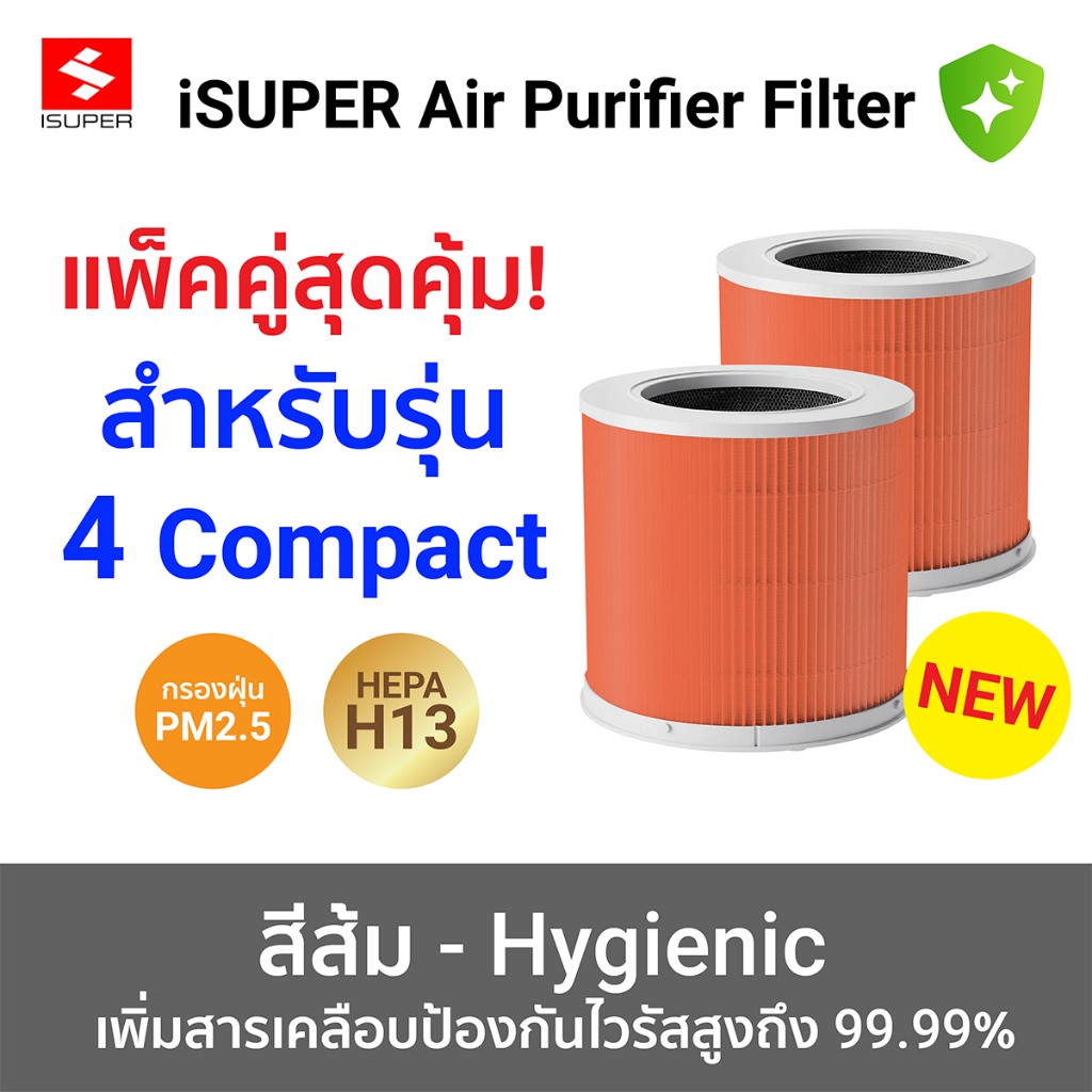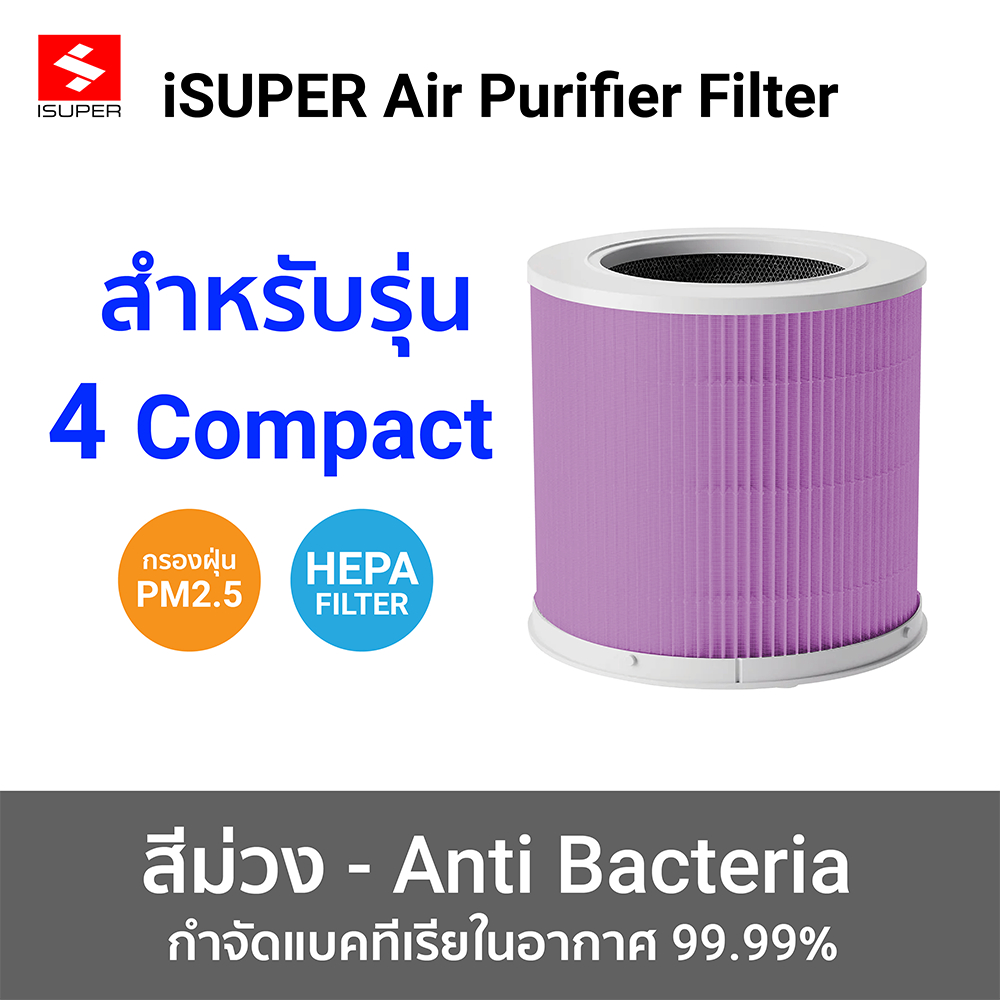 [ลดเหลือ 449] iSUPER Smart Air Purifier 4 Compact Filter ไส้กรองเครื่องฟอกอากาศ กรองกลิ่น ป้องกันฝุ่น PM2.5