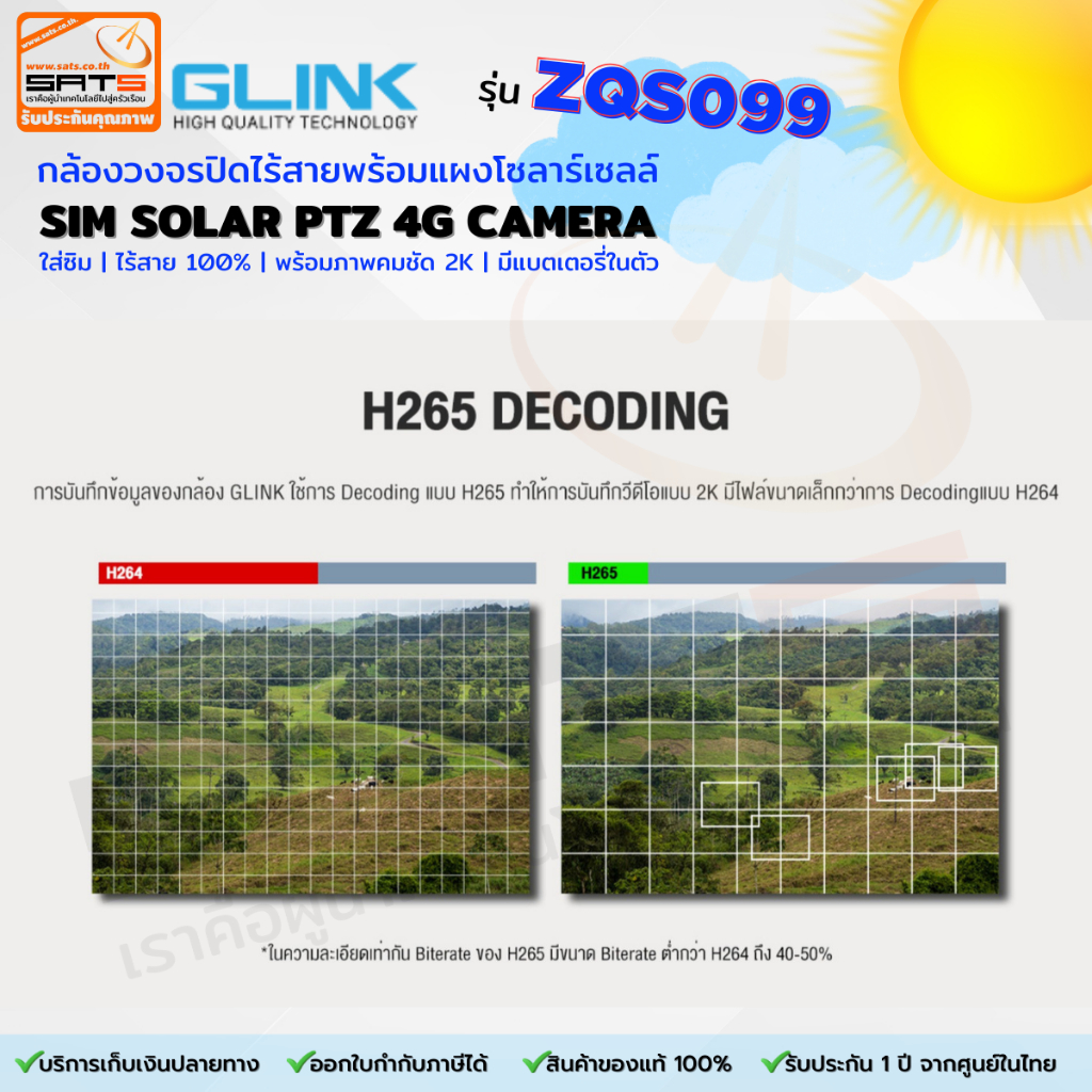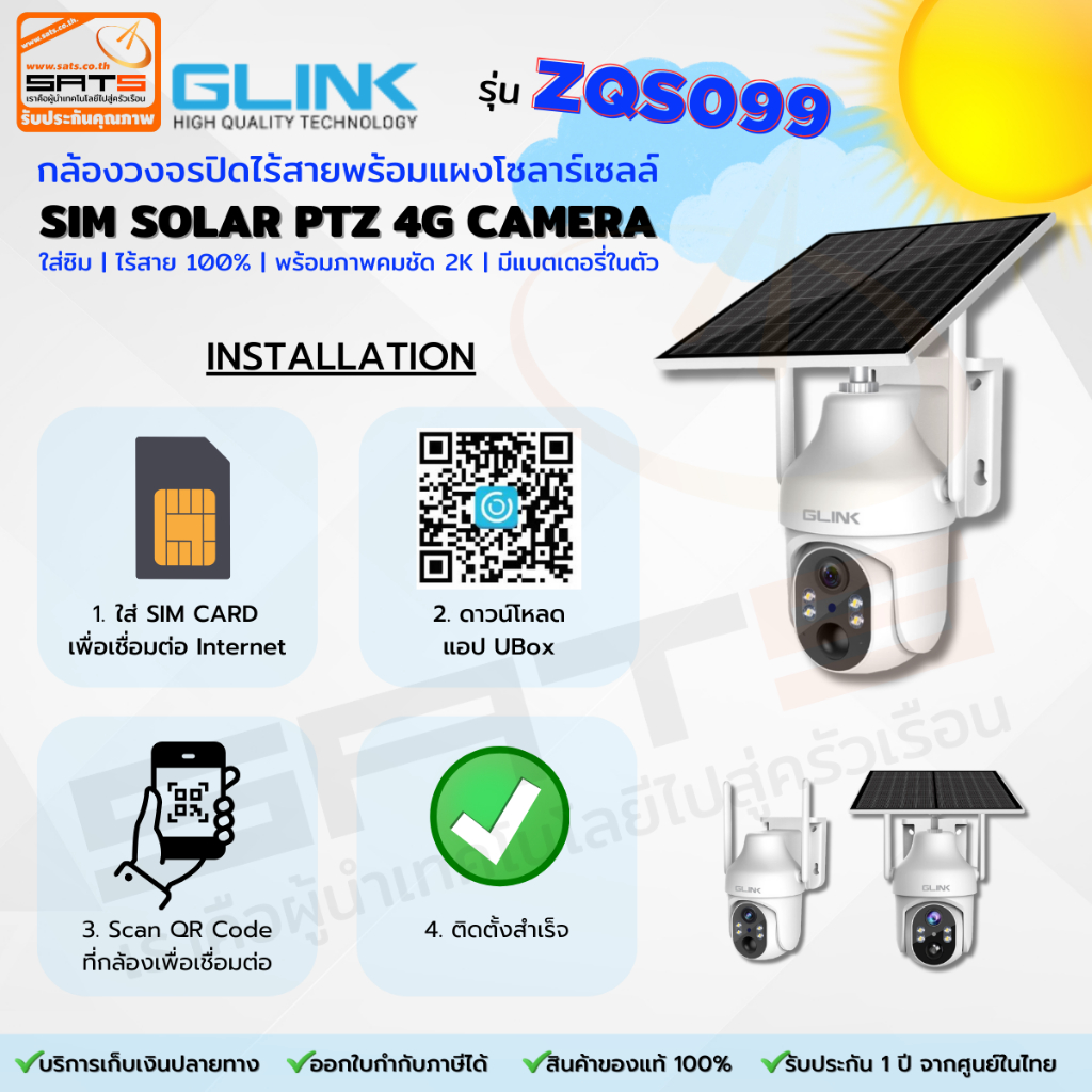 GLINK : รุ่น ZQS099 กล้องวงจรปิดโซล่าเซลล์ ใส่ซิม ไร้สาย มีแบตเตอรี่ในตัว ภาพสี 24 ชม. รองรับซิม 3G/4G LTE