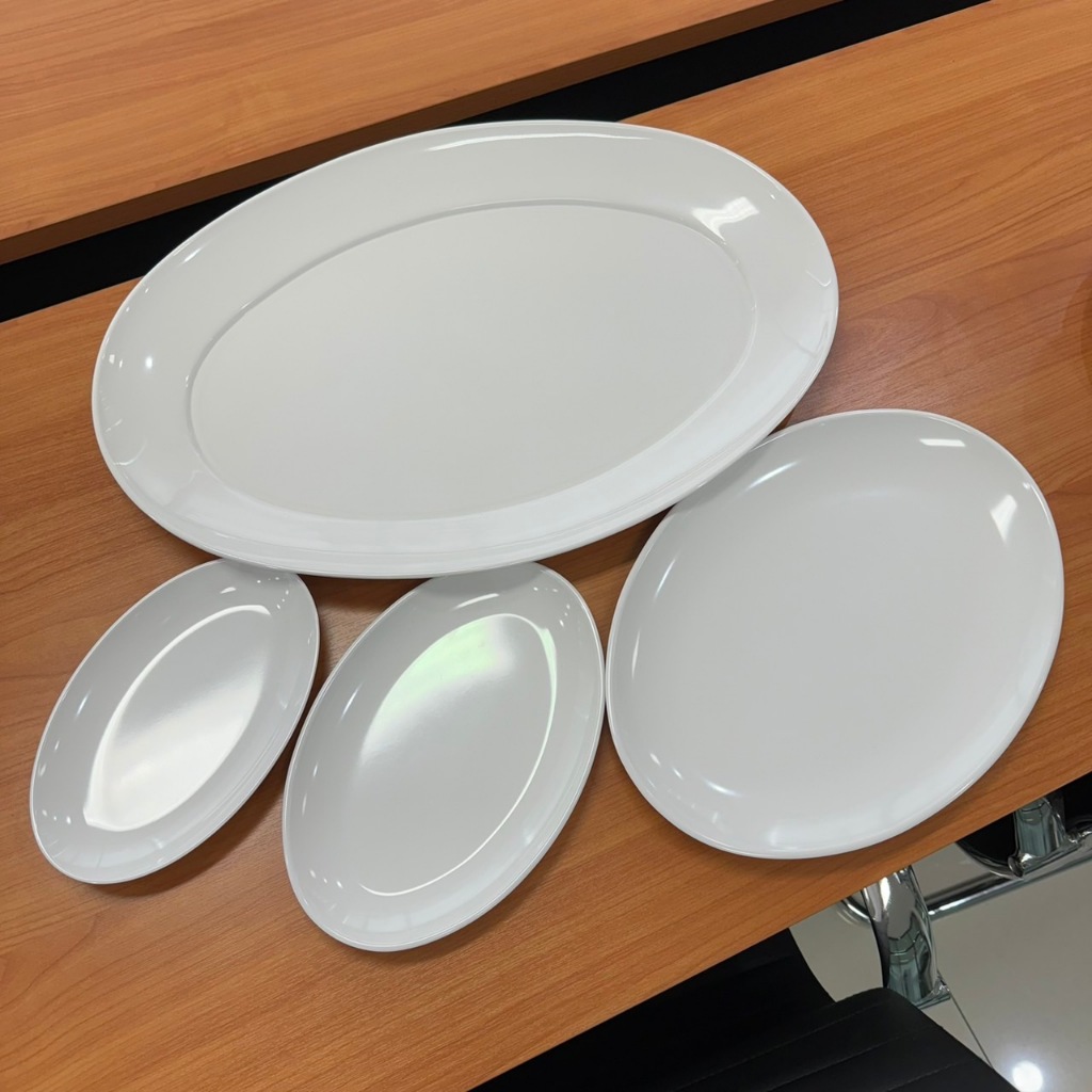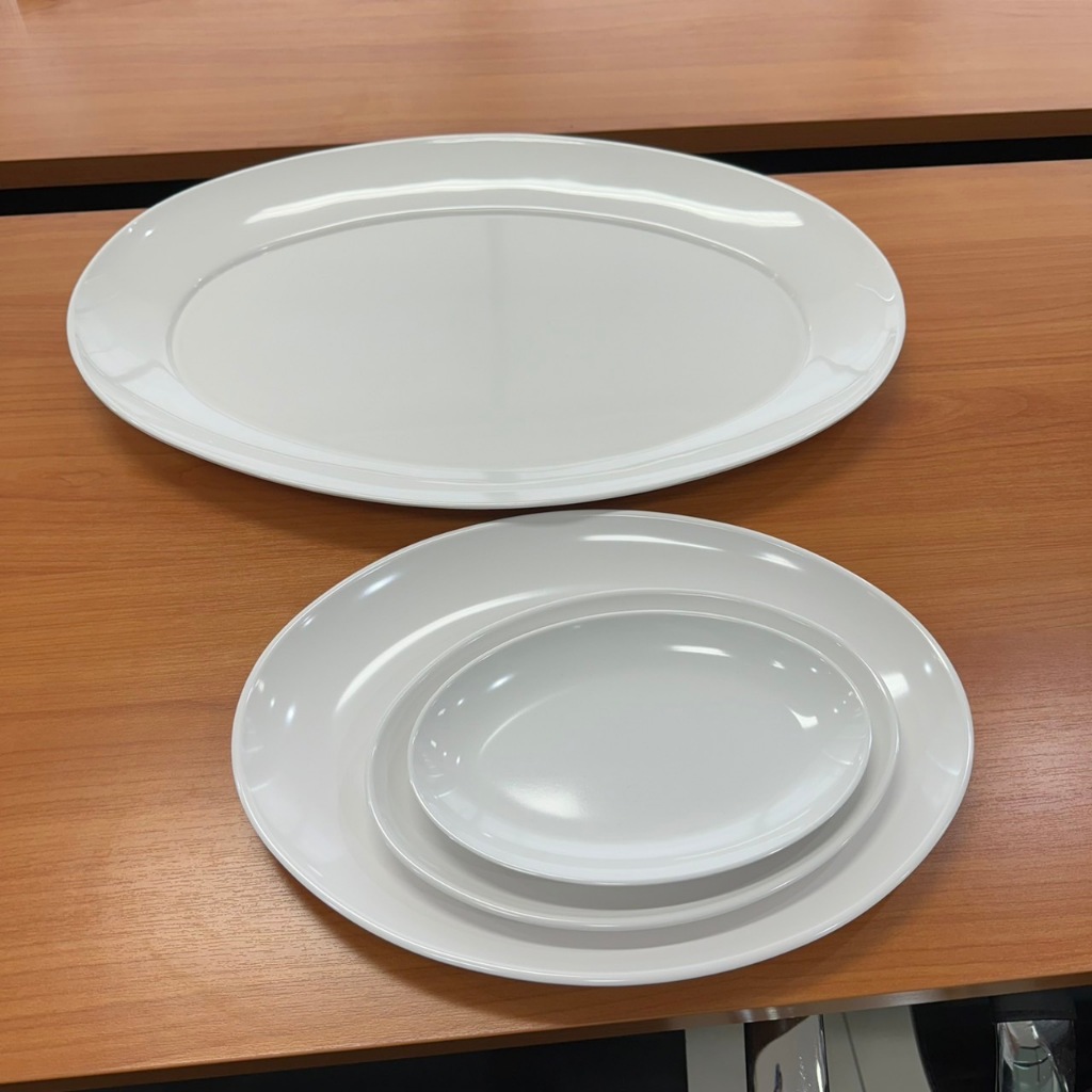 SB Melamine จานเปลวงรีทรงไข่ ไม่มีขอบ ใส่ปลาทอดน้ำปลา ปลาเผา ขนาด 8.5-21 นิ้ว P286