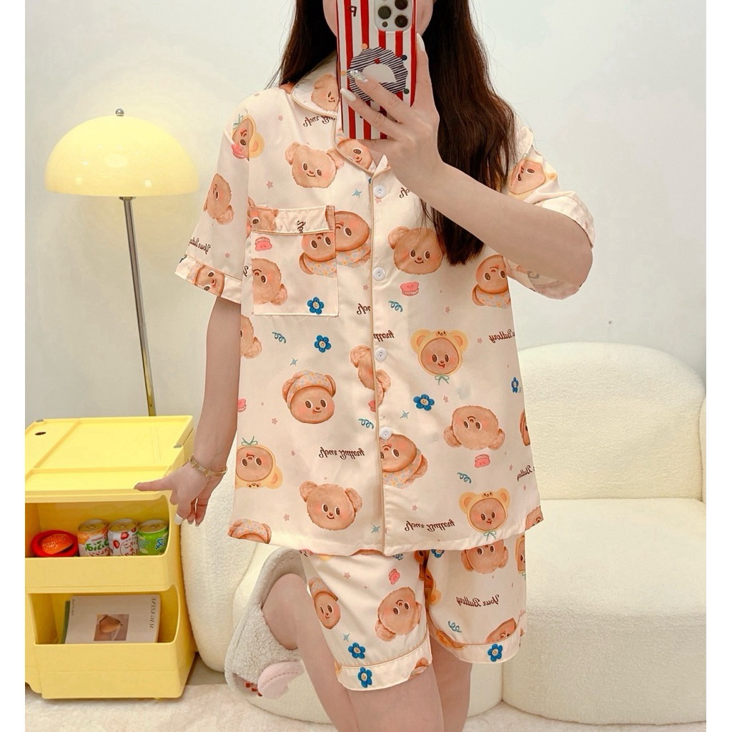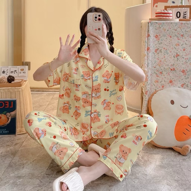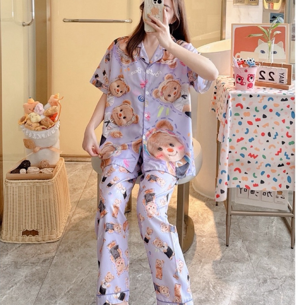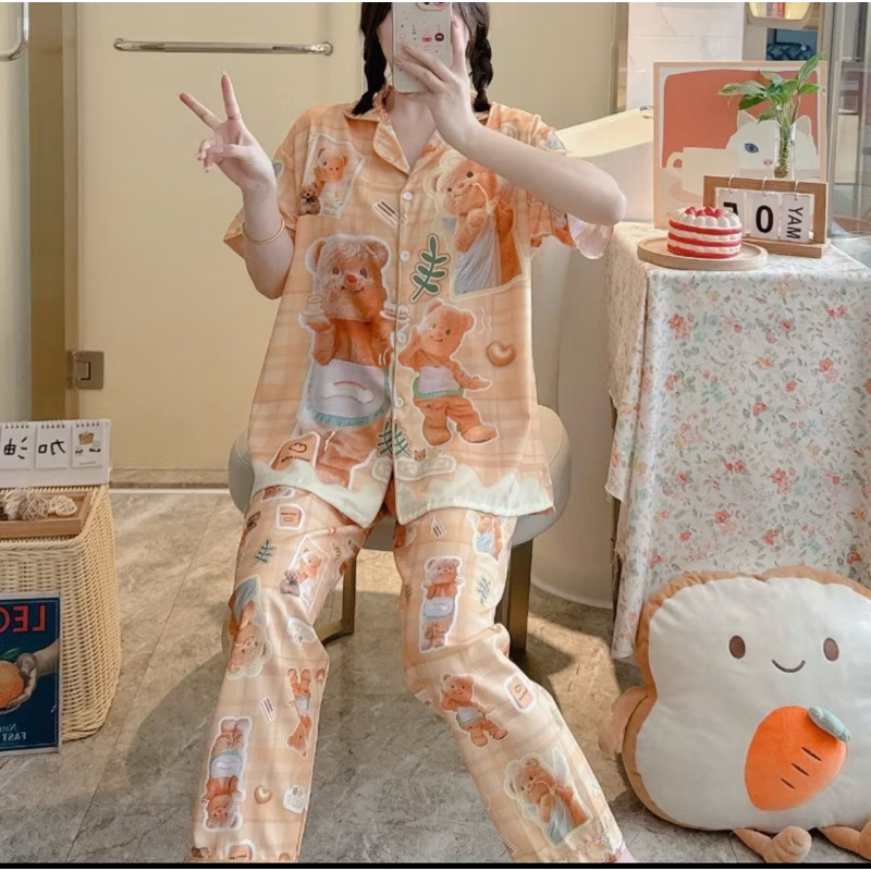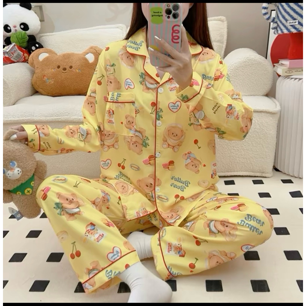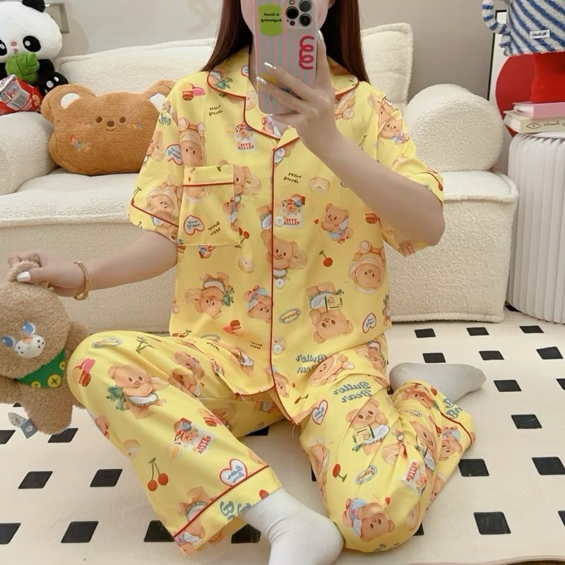ชุดนอน หมีเนย ผ้าไหมอิตาลี่ พร้อมส่ง💛🐻