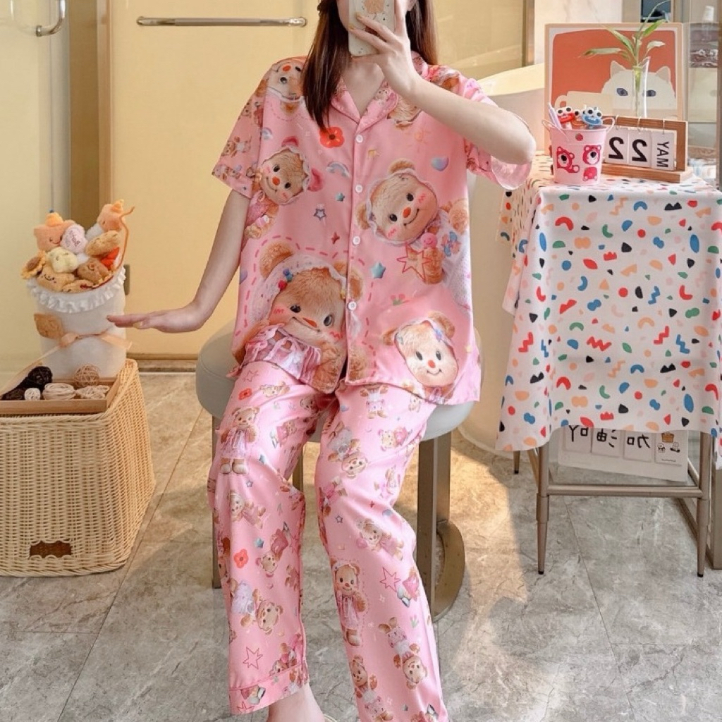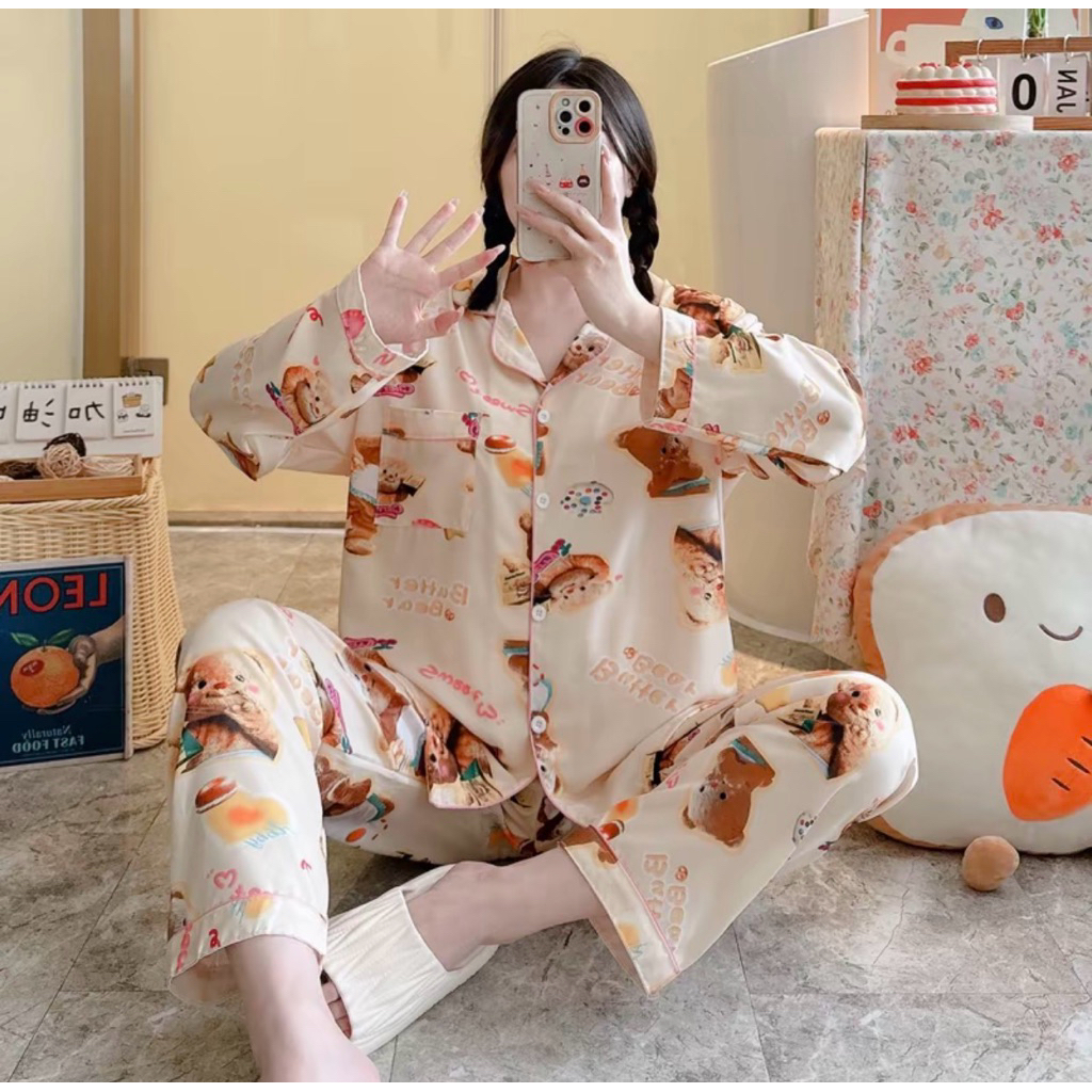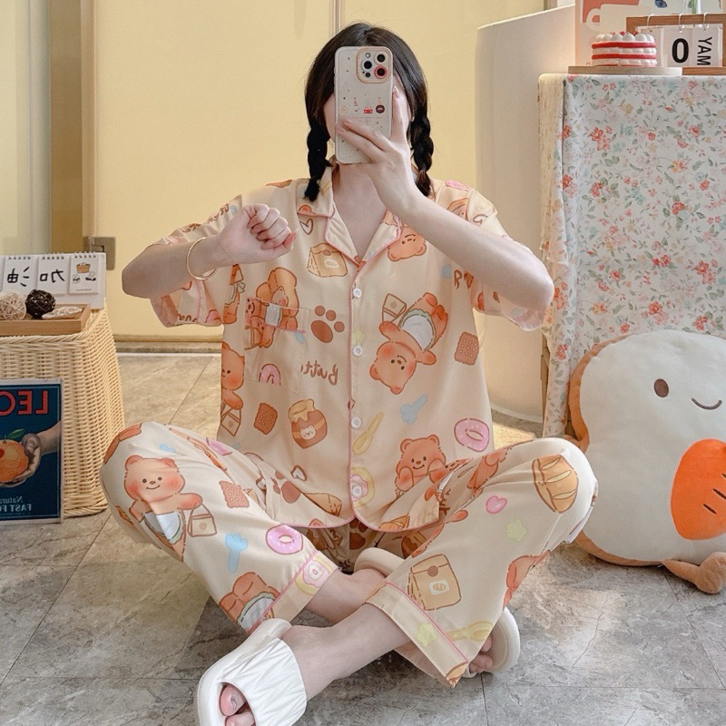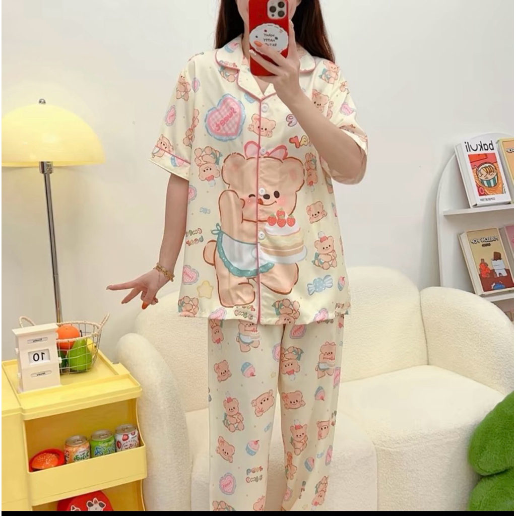 ชุดนอน หมีเนย ผ้าไหมอิตาลี่ พร้อมส่ง💛🐻