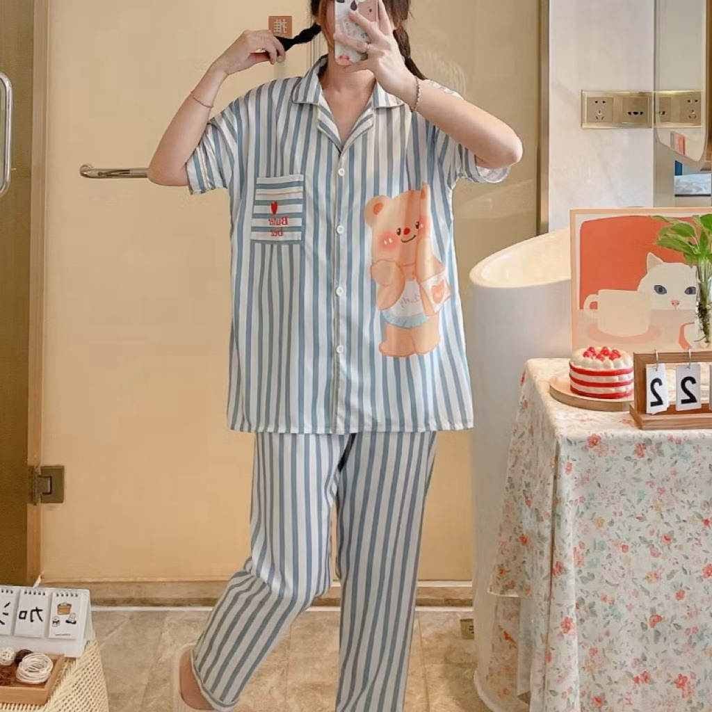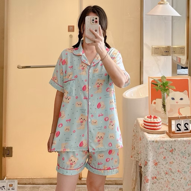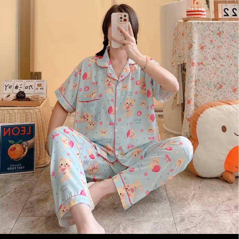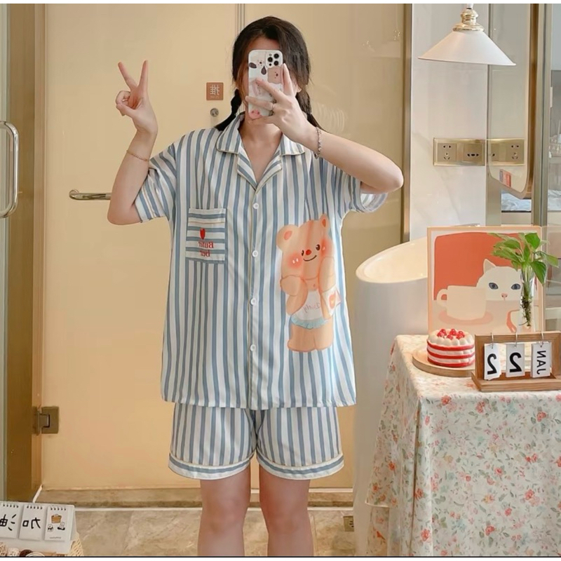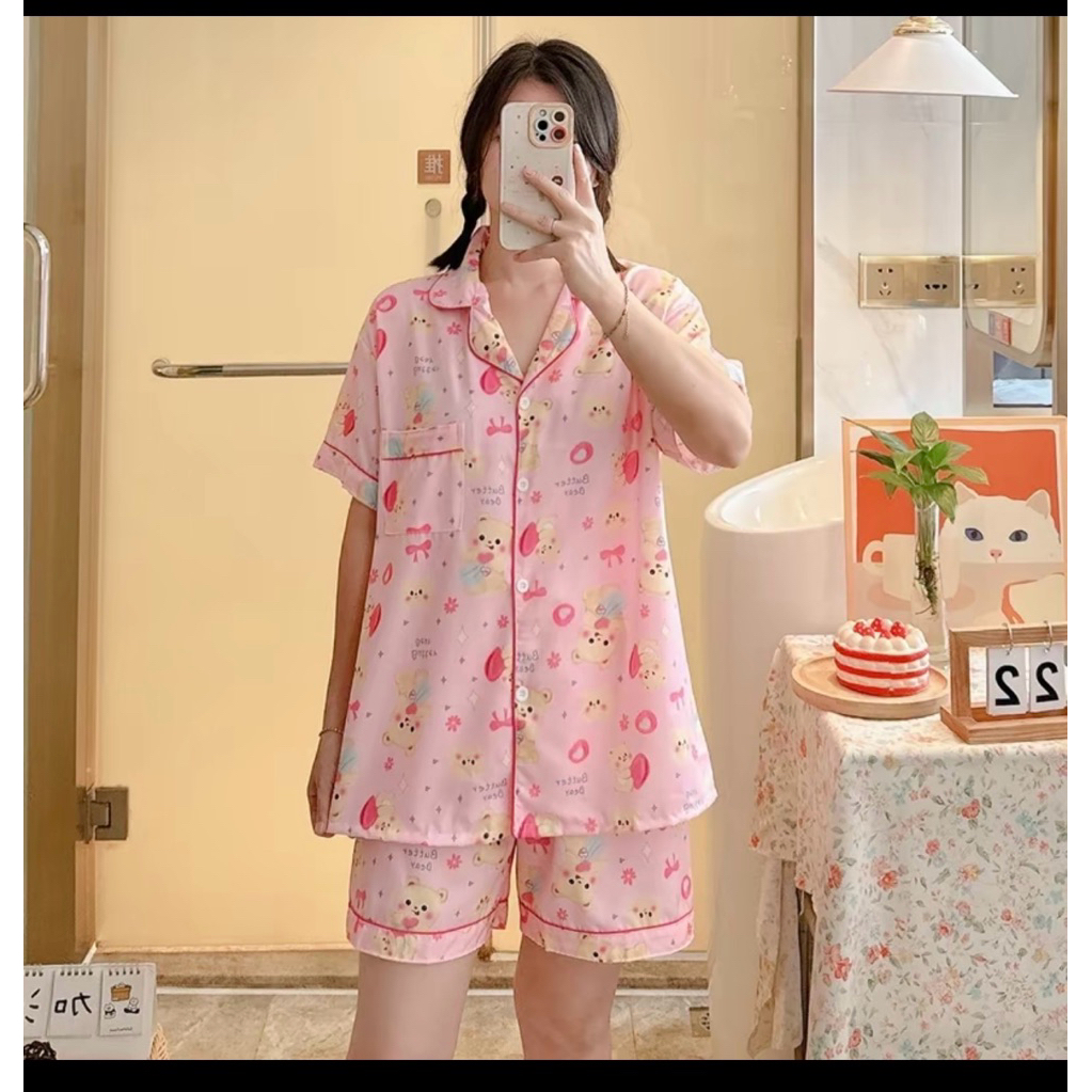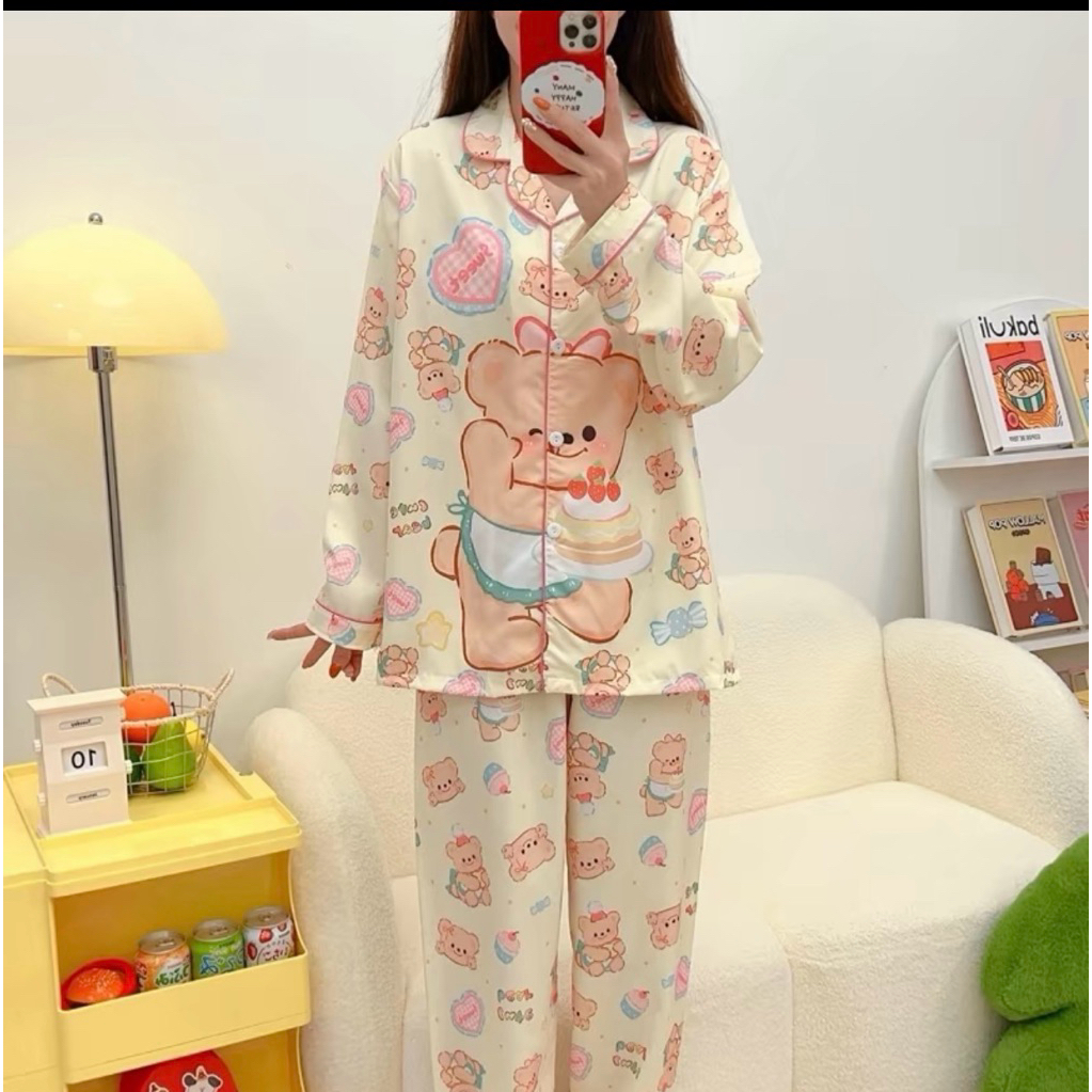 ชุดนอน หมีเนย ผ้าไหมอิตาลี่ พร้อมส่ง💛🐻