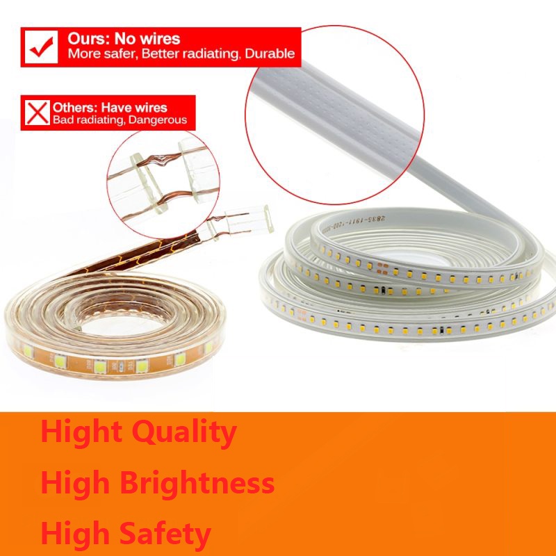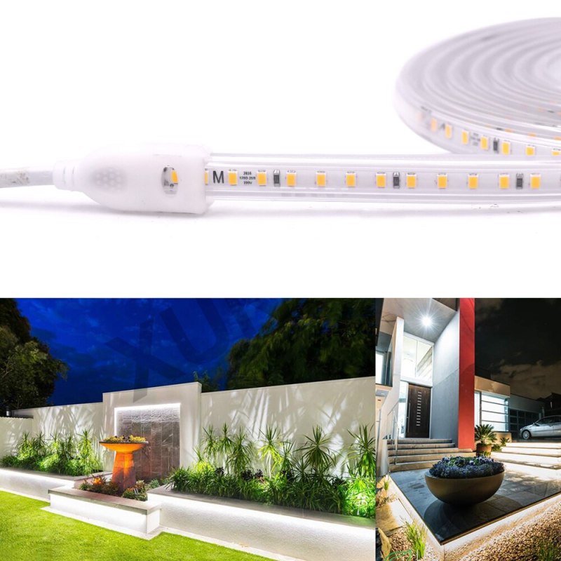 แถบไฟเพดาน Led 220V 2835 120 ดวง ความสว่างสูง กันน้ํา ปลอดภัย สําหรับตกแต่งคริสต์มาส วันหยุด กลางแจ้ง Diy