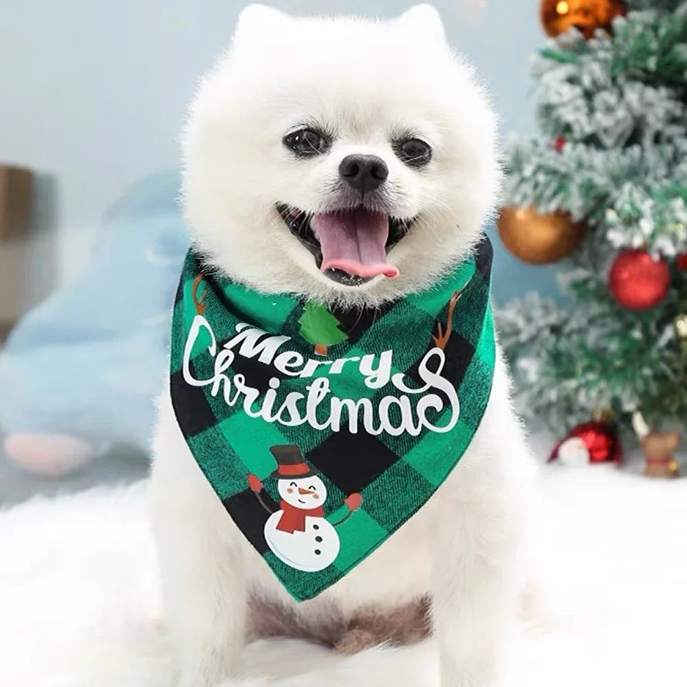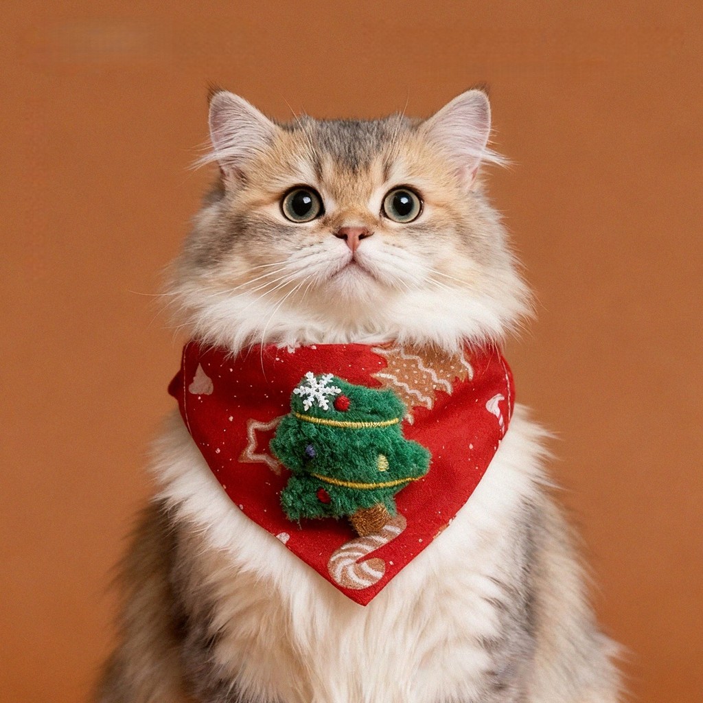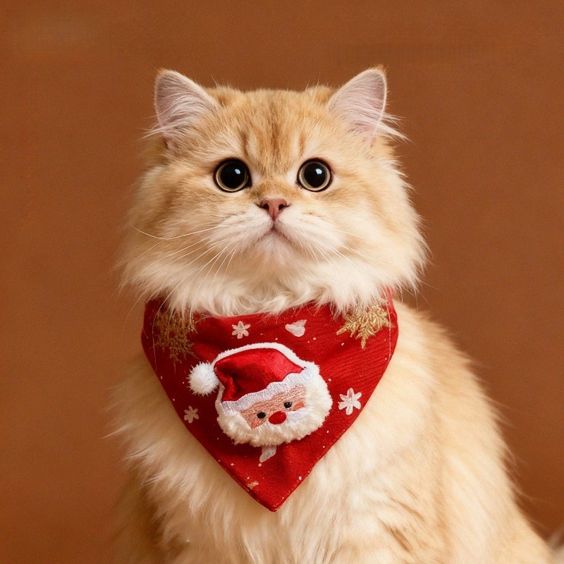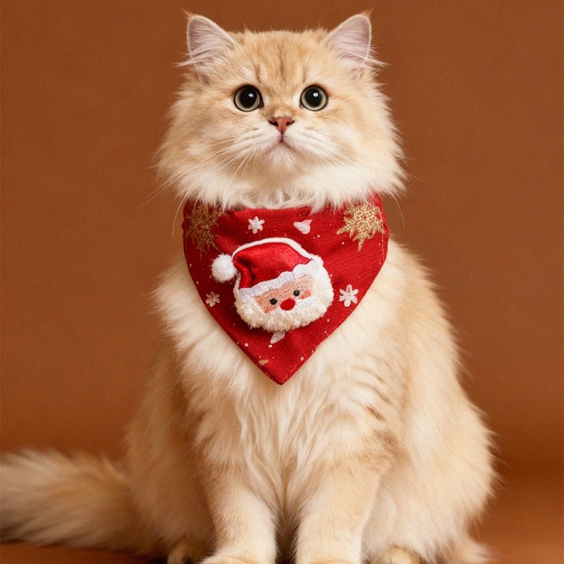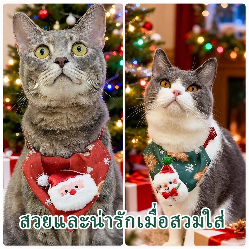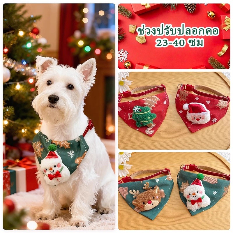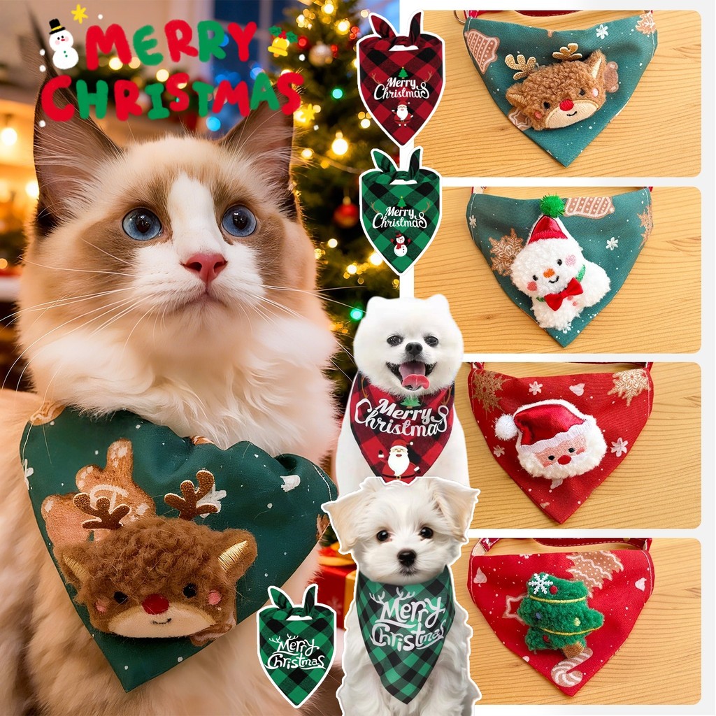 ปลอกคอผ้าพันคอสามเหลี่ยม เครื่องประดับคริสต์มาสแมวน่ารัก แต่งตัวคริสต์มาส ปลอกคอสุนัข ลายกวางสีแดง