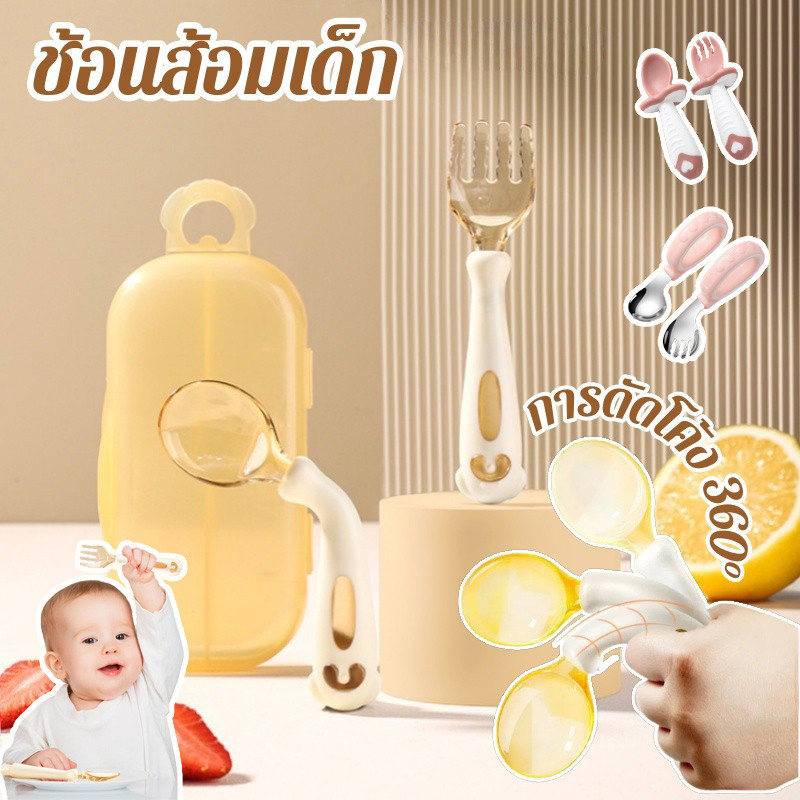 COD ช้อนส้อมเด็ก 360° สามารถโค้งงอได้ วัสดุความปลอดภัย ช้อนเด็ก พกพาสะดวก