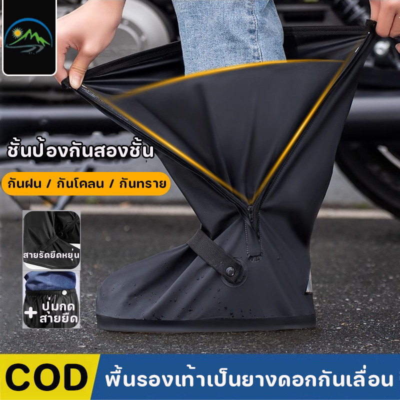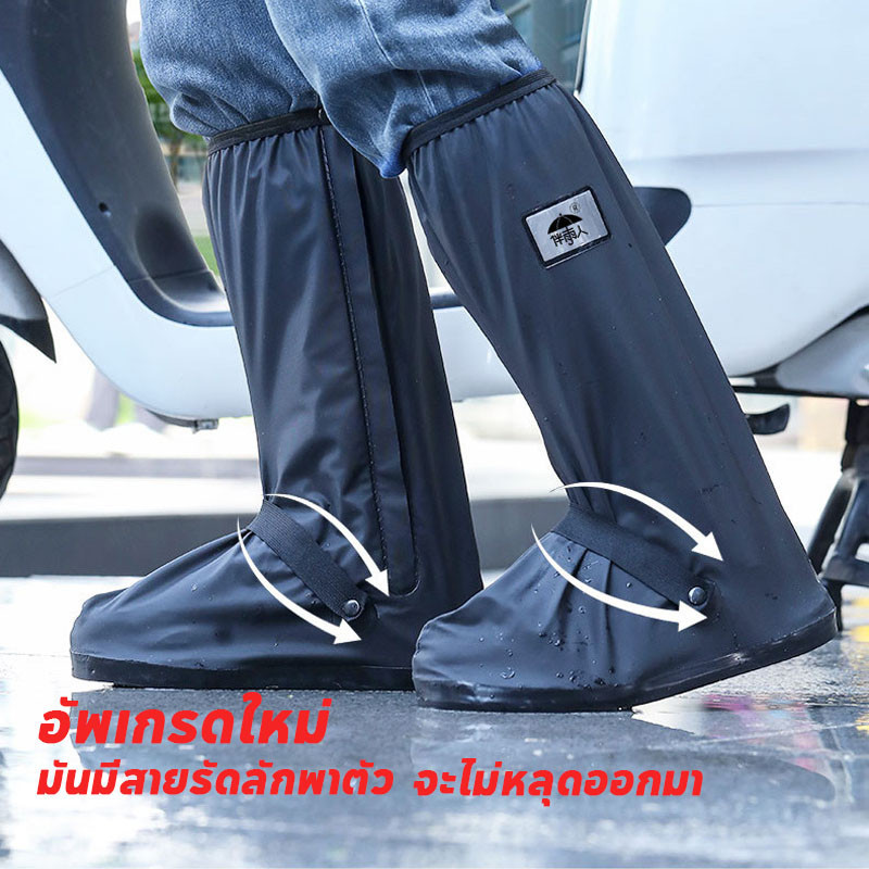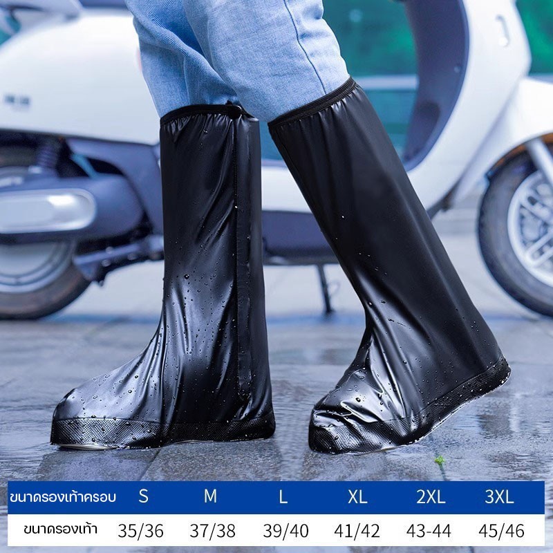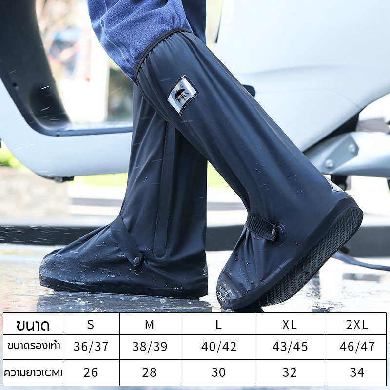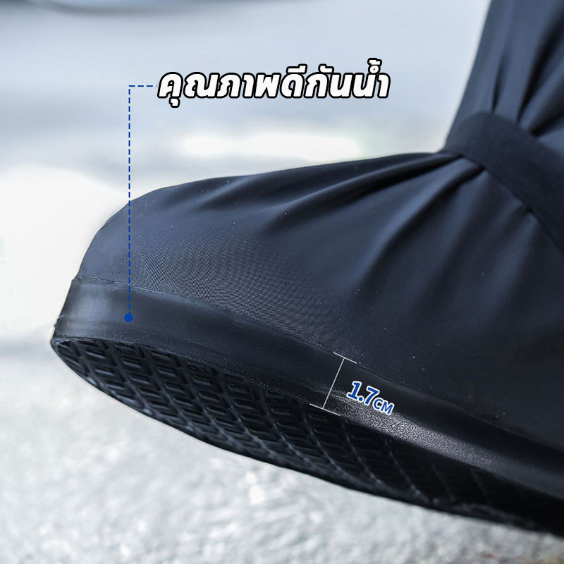ถุงคลุมรองเท้ากันน้ำ คุณภาพดีกันน้ำ พื้นรองเท้าเป็นยางดอกกันเลื่อน หนา พื้นรองเท้าเป็นยางดอกกันเลื่อน และทนต่อการสึกหรอ
