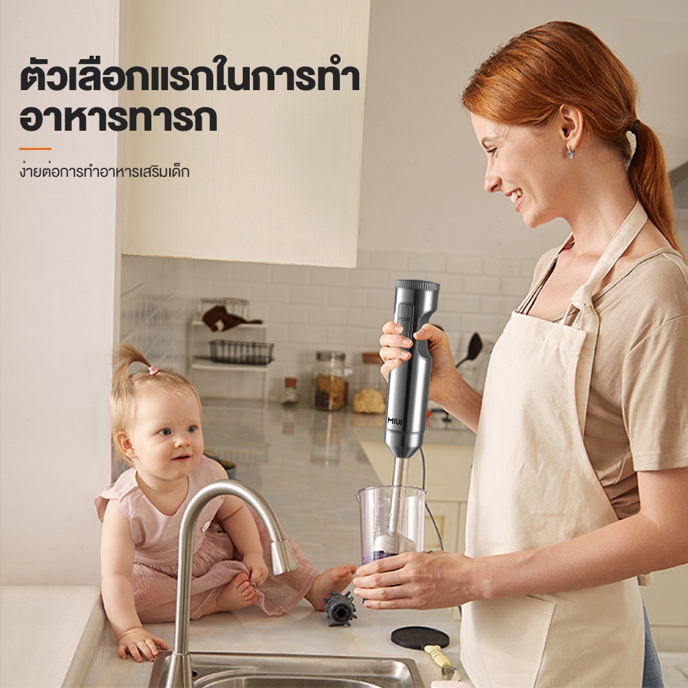MIUI เครื่องปั่นมือถือ เครื่องปั่นมือถือ อเนกประสงค์ Hand Blender ใบมีดสแตนเลสและการออกแบบล็อคนิรภัย