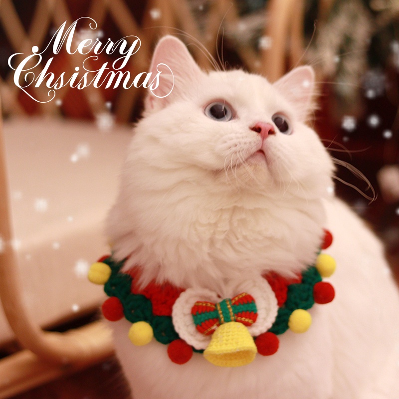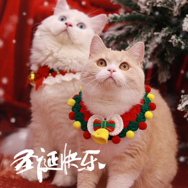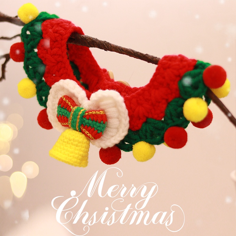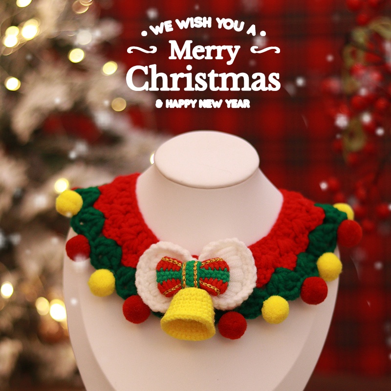 สัตว์เลี้ยงปลอกคอคริสต์มาสสุนัขคริสต์มาสที่กําหนดเองปีใหม่ผูกโบว์ขนสัตว์ถักเอี๊ยมเท็ดดี้บิชอนน้ําลายผ้าขนหนูแมวโบว์สร้อย