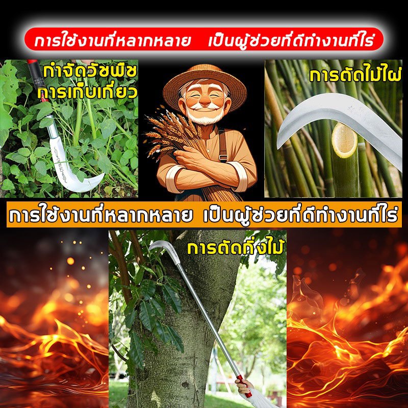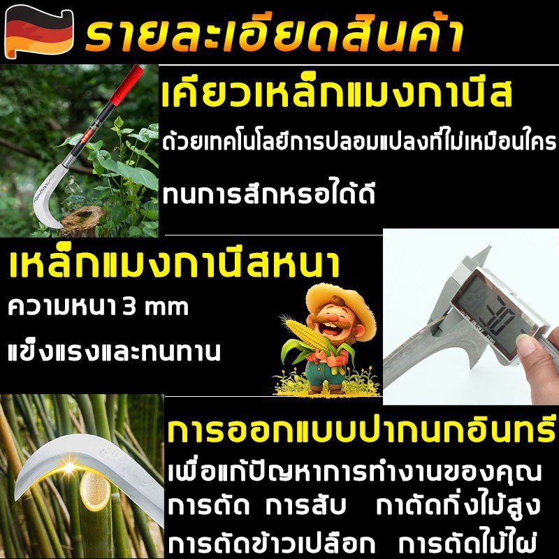 【นำเข้าจากเยอรมนี】YAMI เคียวเกี่ยวหญ้า 60cm/80cm ใบมีดคมชัดทนทาน เคียวเหล็กแมงกานีส แมงกานีส เคียวตัดกิ่ง