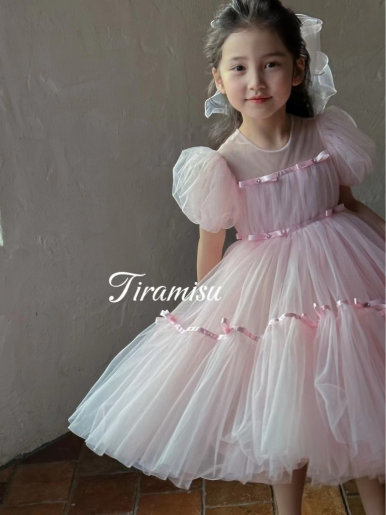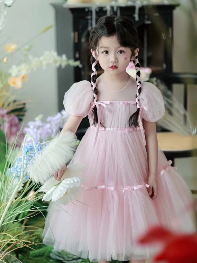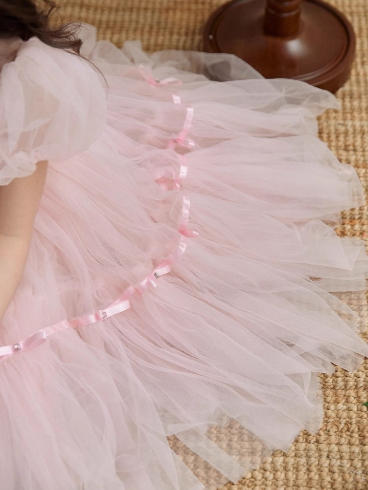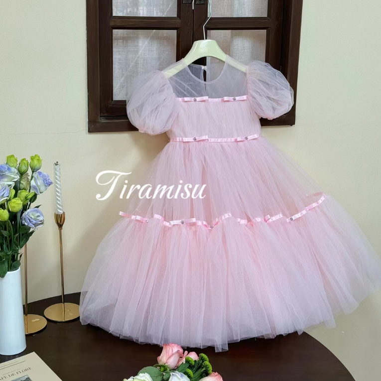 ล้างสต๊อก🔥ชุดเจ้าหญิงเด็กผู้หญิง สีชมพู ฟูมาก โบว์ประดับอัญมณีบนชุด ผ้านุ่มมาก สำหรับวันเกิด ออกงาน แต่งงาน