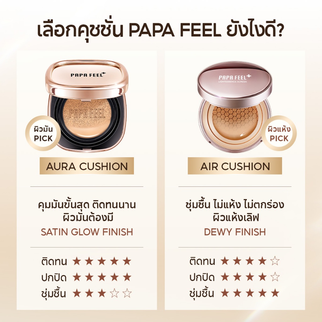 【NEW】PAPA FEEL AURA Matte Cushion คุชชั่น คุมมัน ติดทน ไม่หมอง ไม่ดรอประหว่างวัน 12g