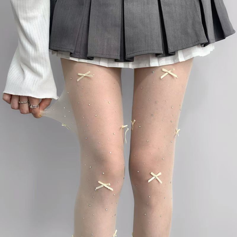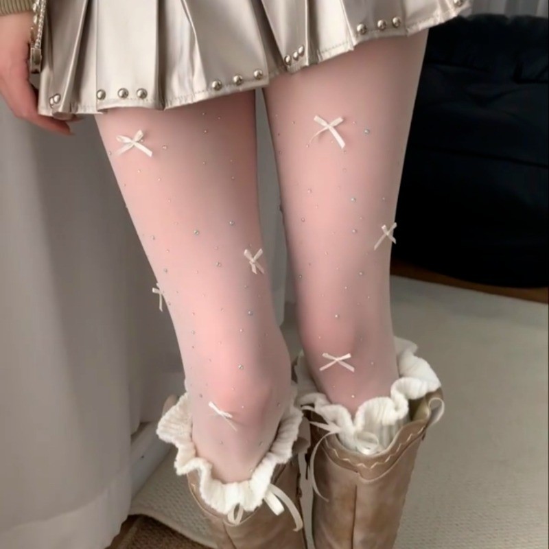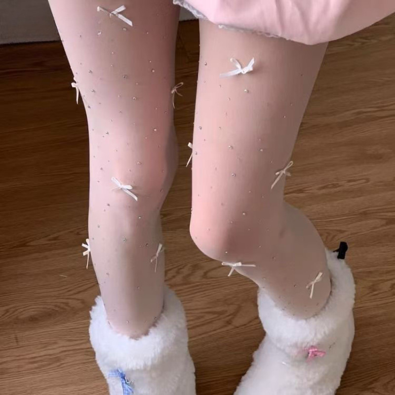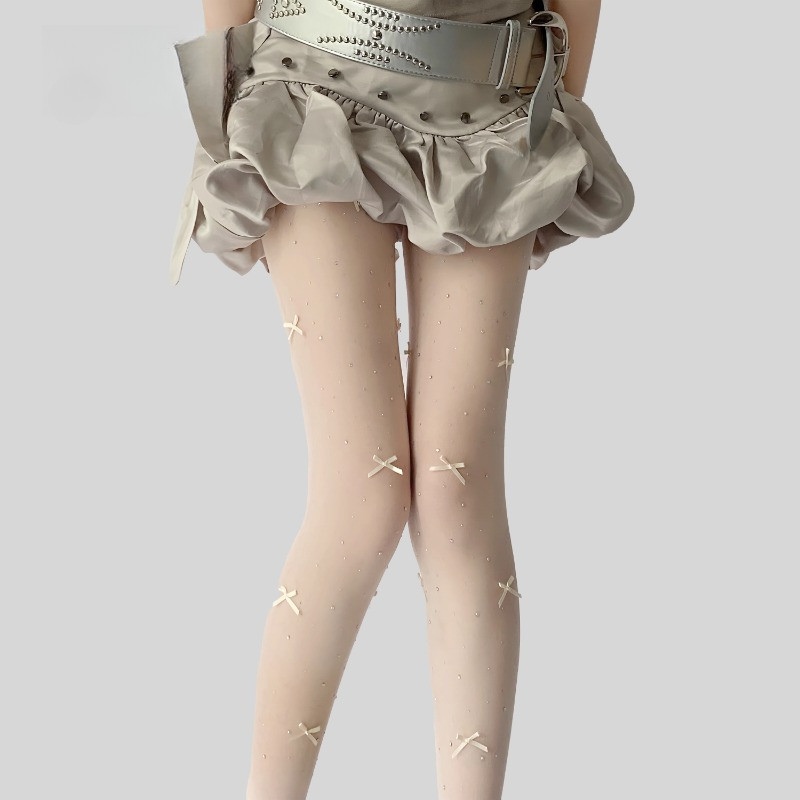 ถุงน่องบัลเล่ต์สีขาว ลายโบว์ สไตล์lolita