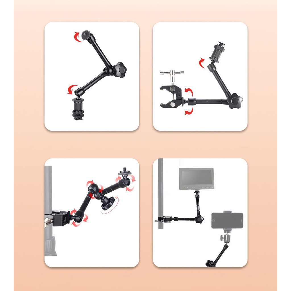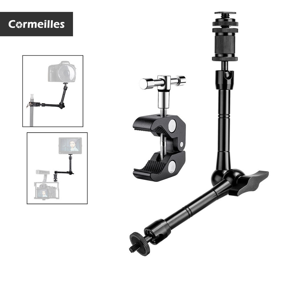 Cormeilles คลิปหนีบแขน 11 นิ้ว และคีมหนีบ ปรับได้ ขนาดใหญ่ พร้อมเกลียว 1/4 นิ้ว และ 3/8 นิ้ว สําหรับกล้อง DSLR มอนิเตอร์ LCD ไฟแฟลช LED