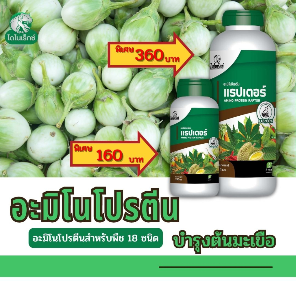 มะเขือ โตไว ใบเขียว ผลใหญ่ แข็งแรง ผลผลิตดี อะมิโนโปรตีนจำเป็นสำหรับพืช 18 ชนิด อะมิโนแรปเตอร์ โดย ไดโนเร็กซ์