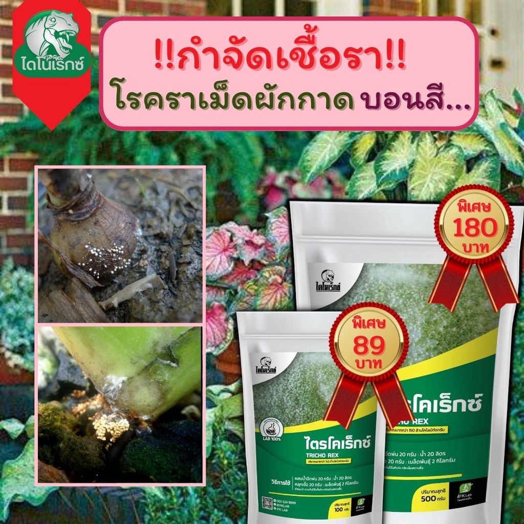 กำจัดเชื้อรา สาเหตุของโรคราเม็ดผักกาด ในบอนสี ไตรโคเดอร์มา ไตรโคเร็กซ์ ปลอดภัยต่อคนและสัตว์เลี้ยง