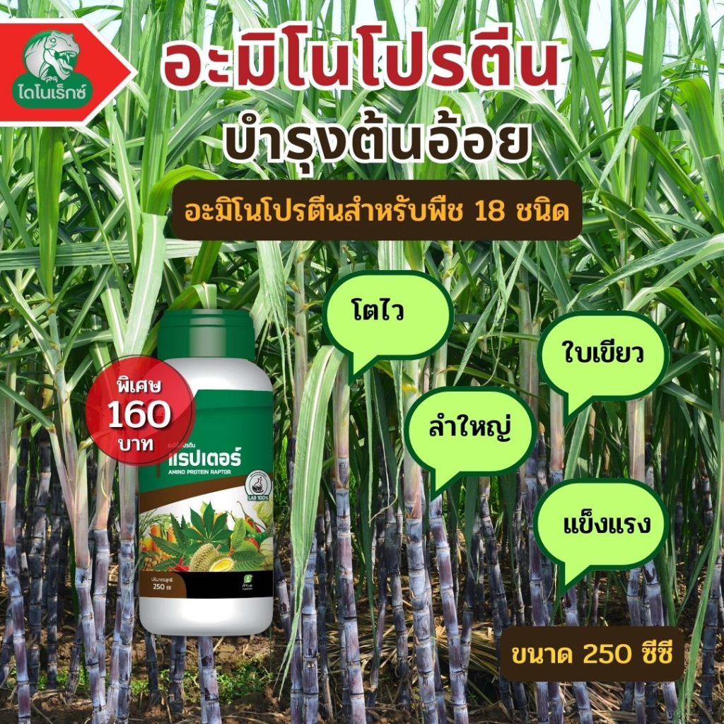 อ้อย โตไว ใบเขียว ลำใหญ่ แข็งแรง ผลผลิตดี อะมิโนโปรตีนจำเป็นสำหรับพืช 18 ชนิด อะมิโนแรปเตอร์ โดย ไดโนเร็กซ์