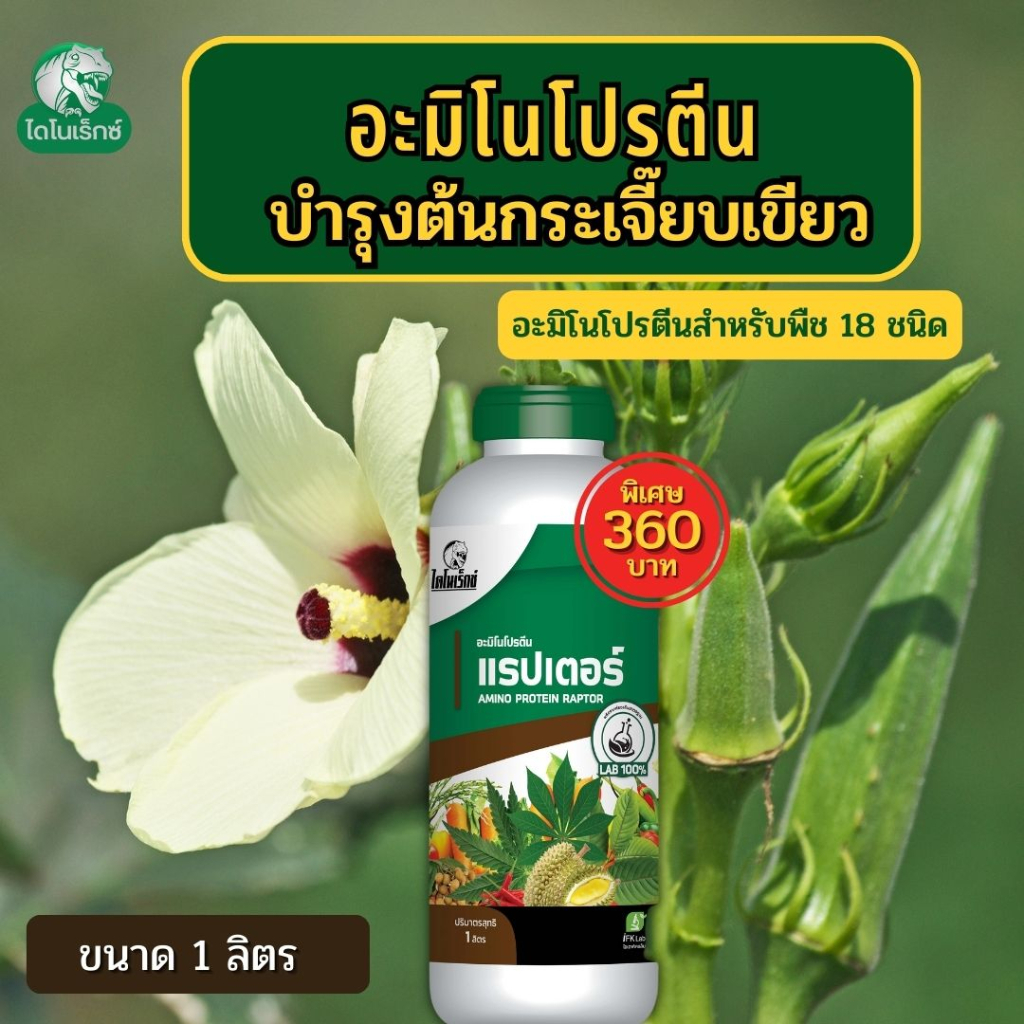 กะเจี๊ยบเขียว โตไว ใบเขียว แข็งแรง ผลผลิตดี อะมิโนโปรตีนจำเป็นสำหรับพืช 18 ชนิด อะมิโนแรปเตอร์ โดย ไดโนเร็กซ์