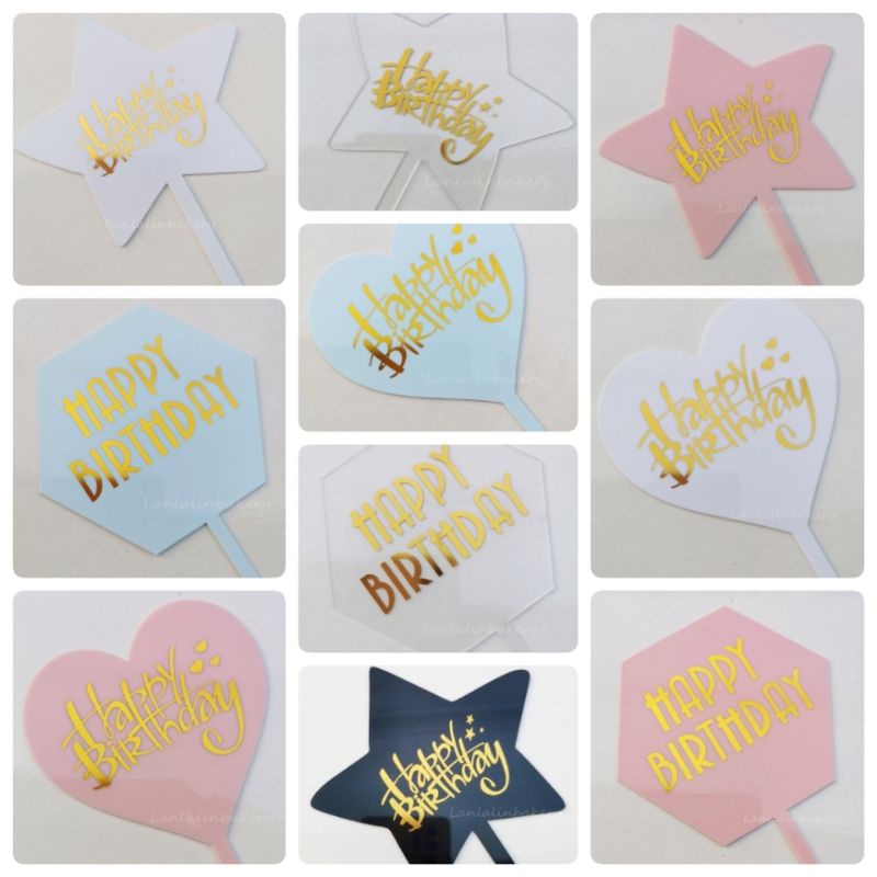 พร้อมส่งทุกแบบป้ายปักเค้กวันเกิด happy birth day มินิมอล