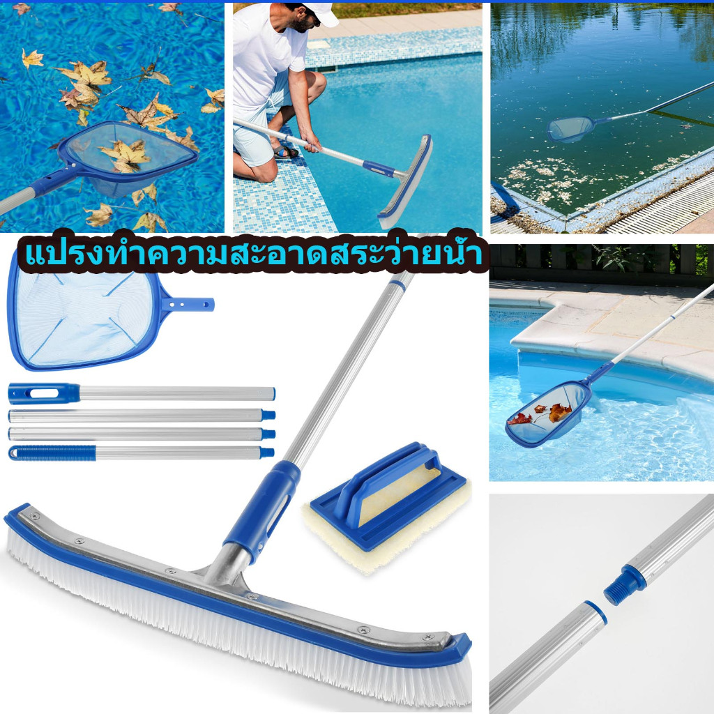 ชุดแปรงทําความสะอาดสระว่ายน้ํา แบบพกพา ด้ามจับ 63 นิ้ว น้ําหนักเบา เก็บง่าย ชุดแปรงสระว่ายน้ำ