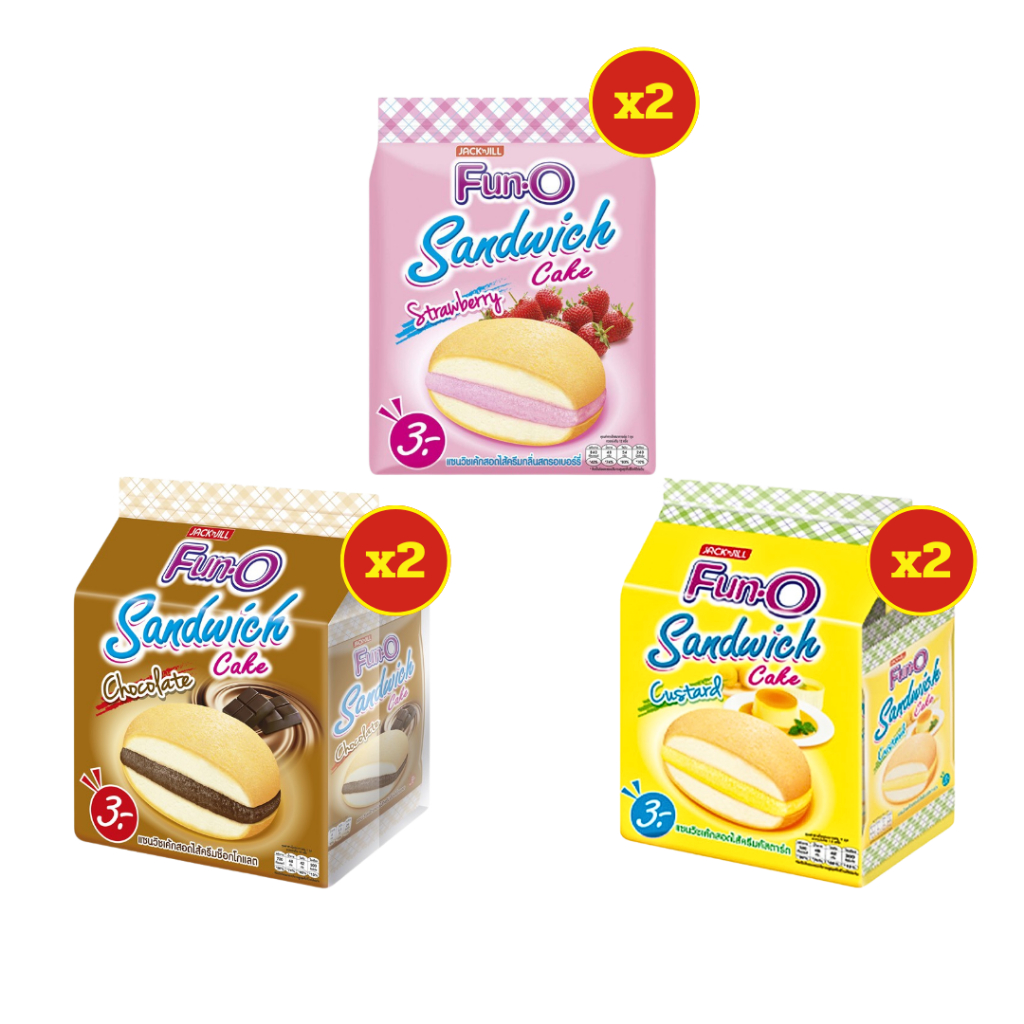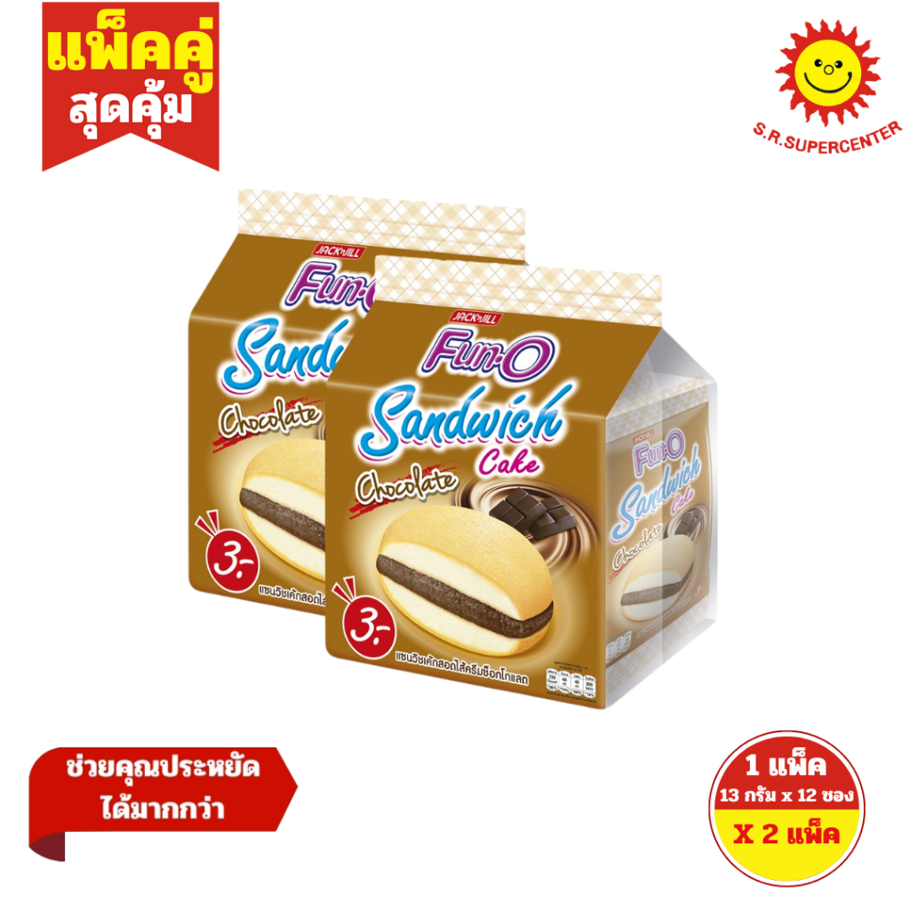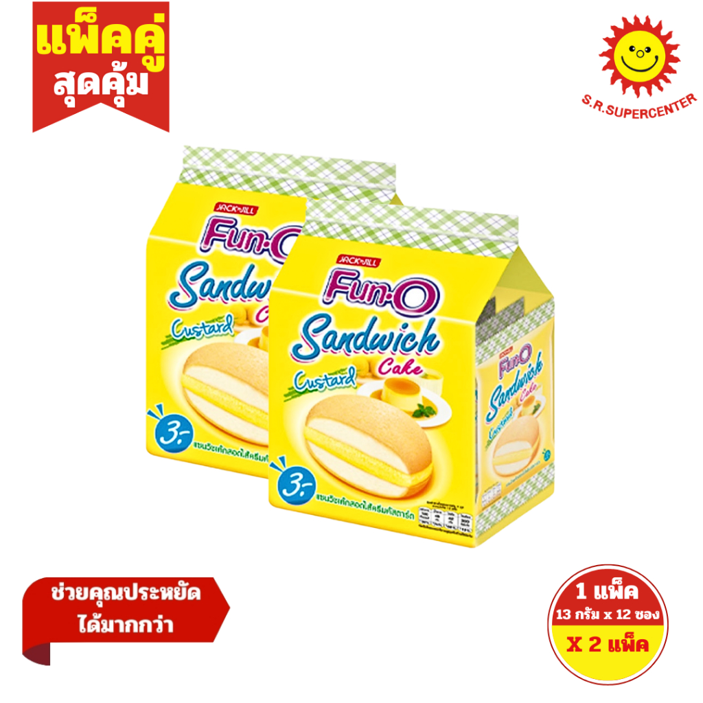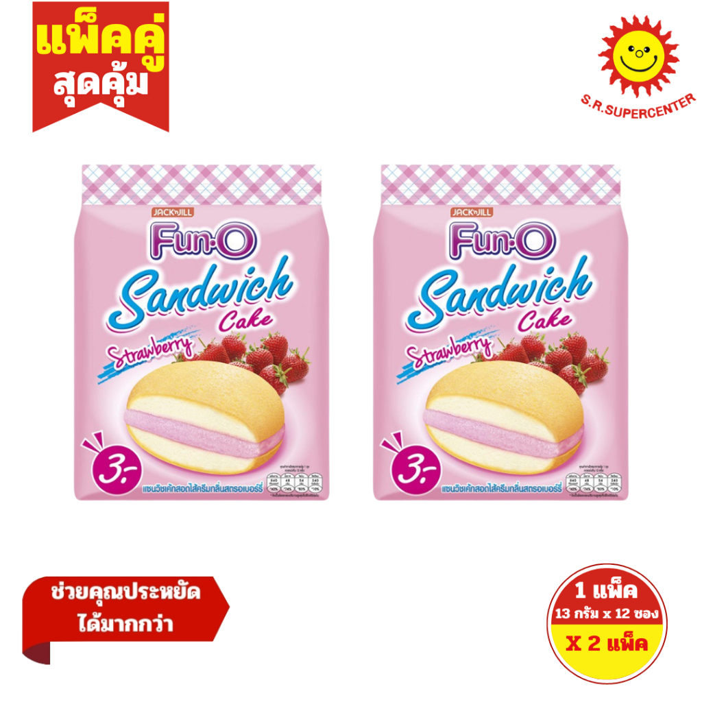 [ แพ็คคู่ ] Fun-O ฟันโอ แซนวิชเค้กสอดไส้ครีม ขนาด 13 กรัม x12 ชิ้น ( 2 แพ็ค ) ทุกรสชาติ