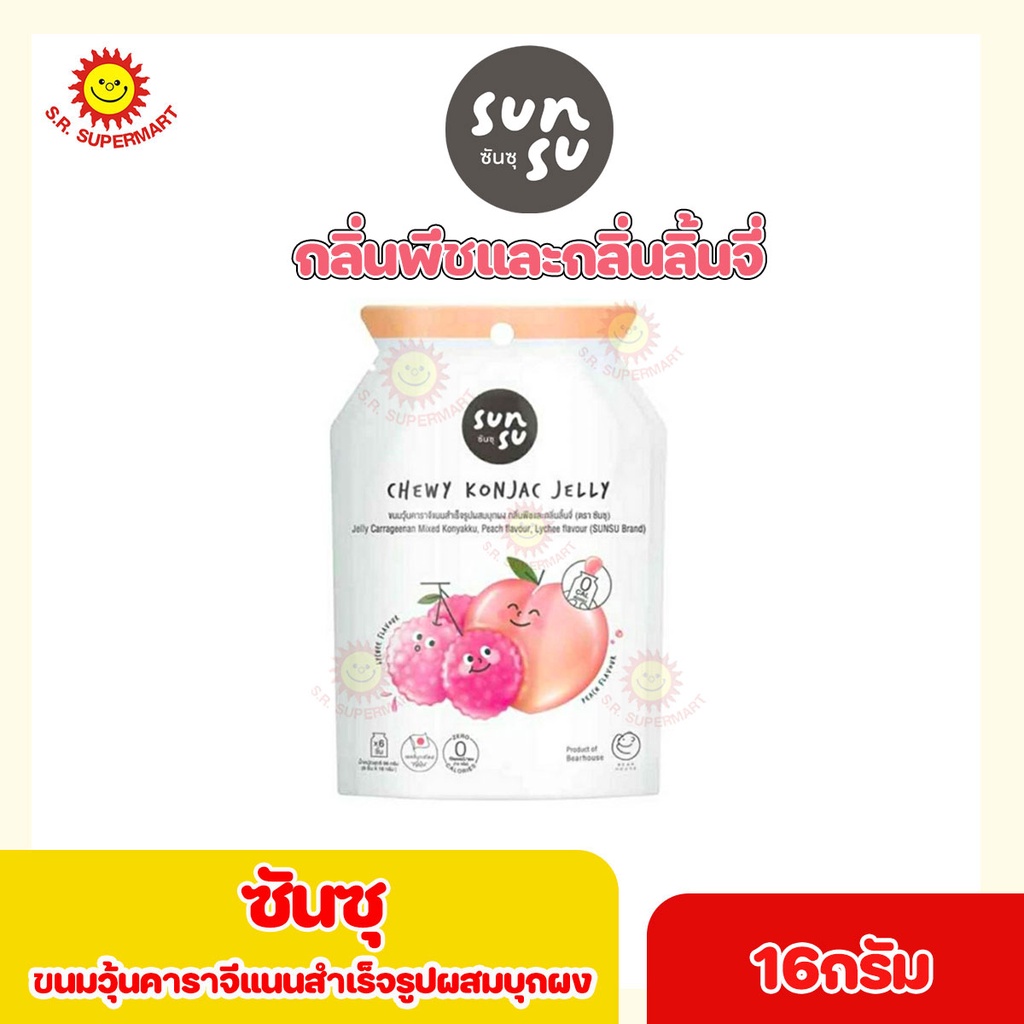 [1 ชิ้น]Sunsu ซันซุ เยลลี่ผสมบุกหอมอร่อย เจลลี่บุก 0 แคลลอรี่ 16 กรัม