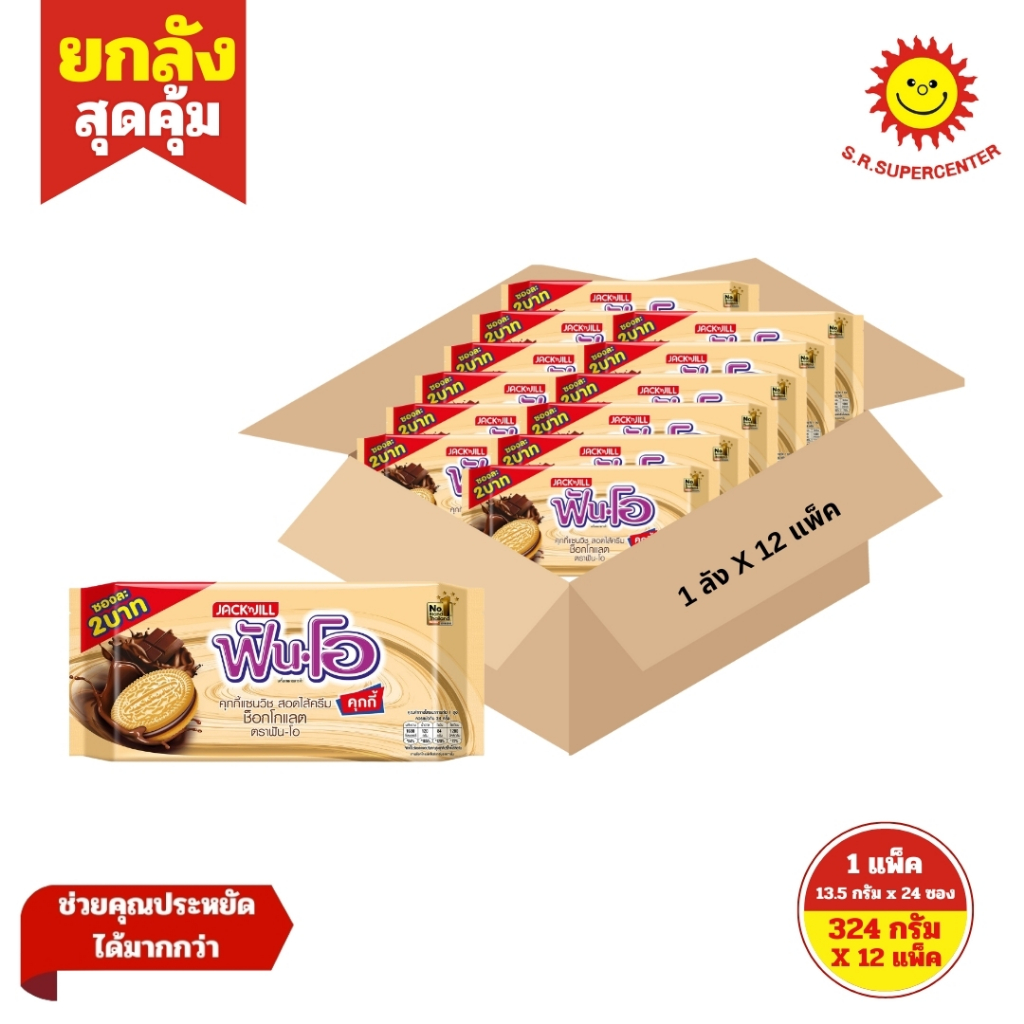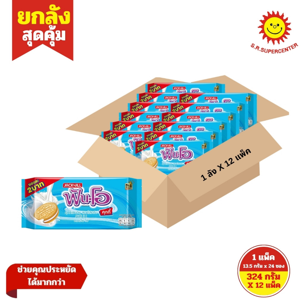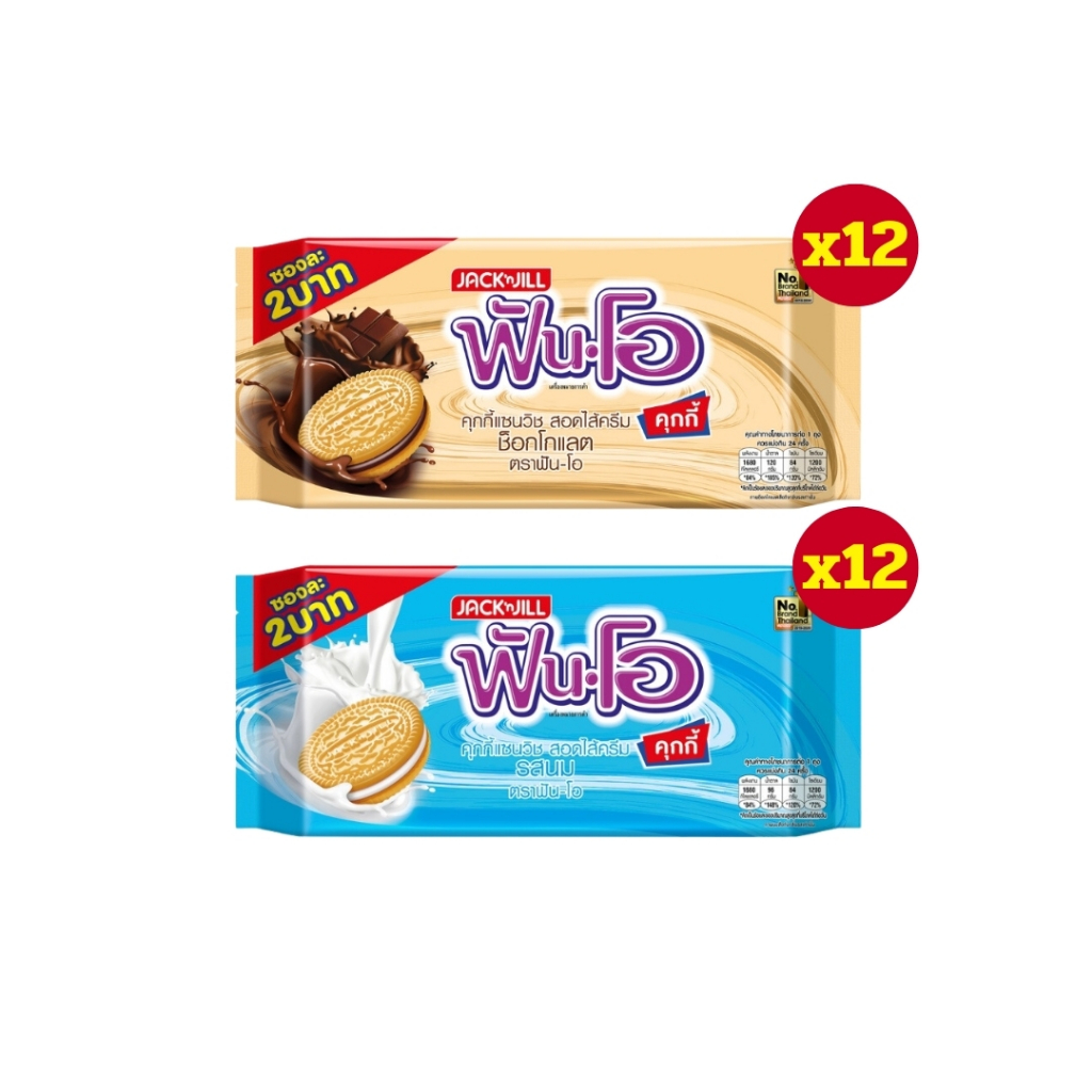 [ ยกลัง ] Fun-O Cookies ฟันโอ คุกกี้แซนวิช สอดไส้ครีม (ซอง2บาท) ขนาด 13.5 กรัม แพ็ค 24 ซอง (ยกลัง12แพ็ค) คละรส
