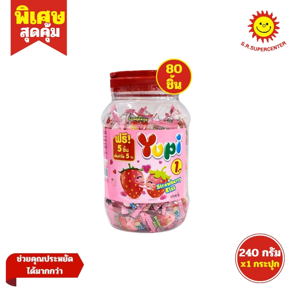 [ 1กระปุก ] Yupi ยูปี้ วุ้นเจลาตินสำเร็จรูป กลิ่นผลไม้ต่างๆ จำนวน 80 ชิ้น ขนาด 240-248 กรัม