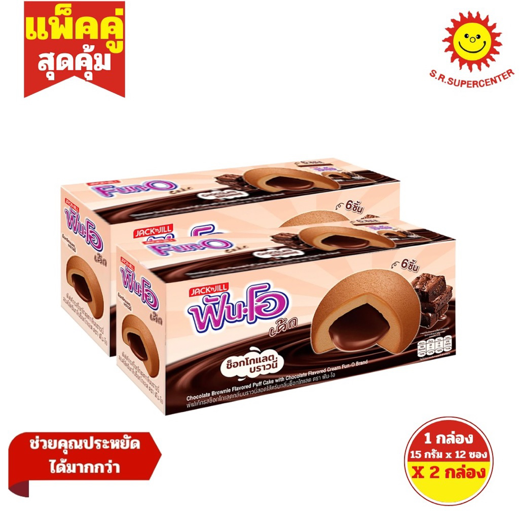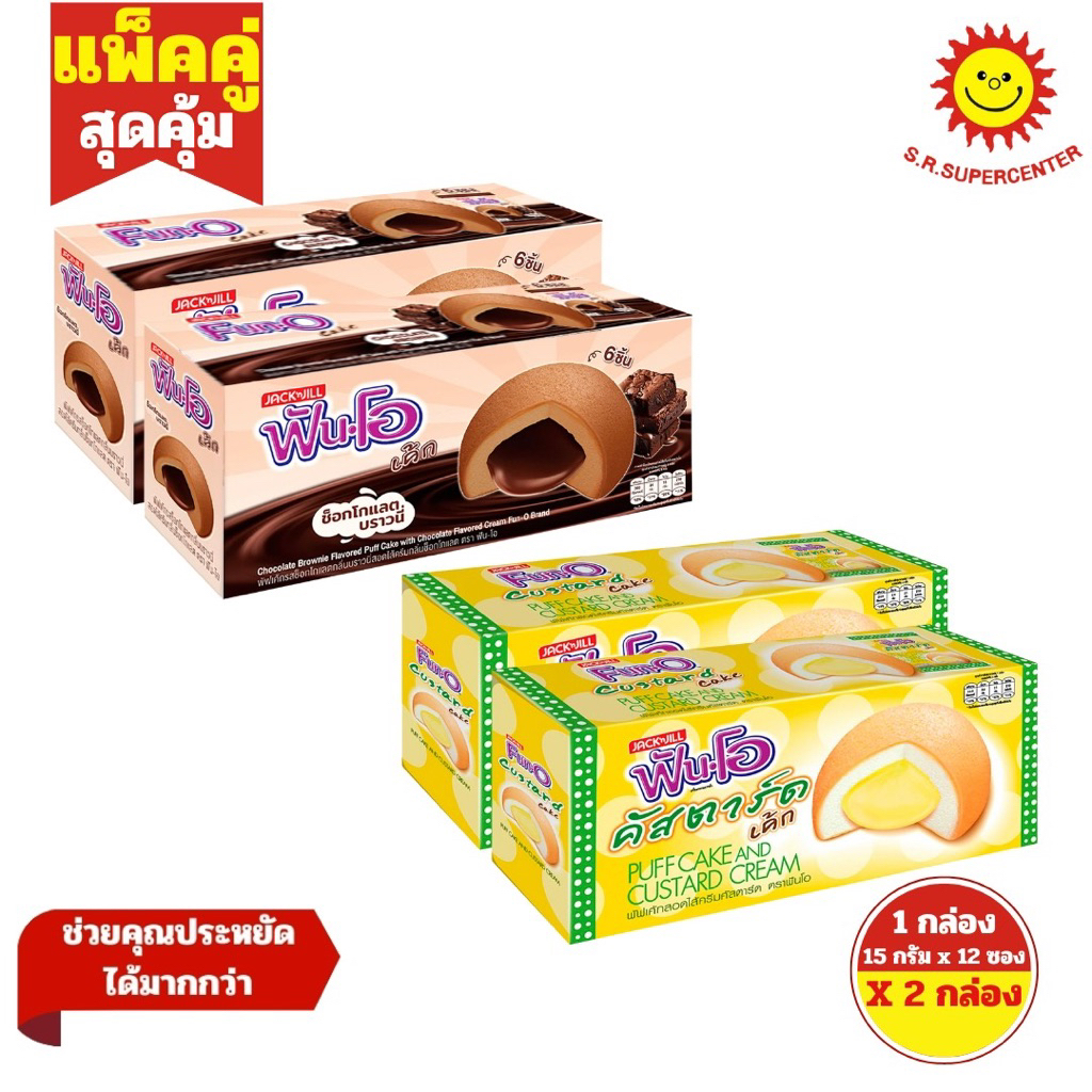 [ 2กล่อง ] Fun-O ฟันโอ พัฟเค้กสอดไส้ครีมคัสตาร์ด/ช็อก ขนาด 15 กรัม กล่อง 12 ซอง (2กล่อง)