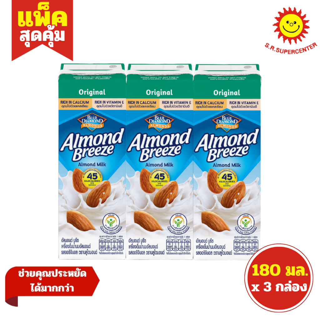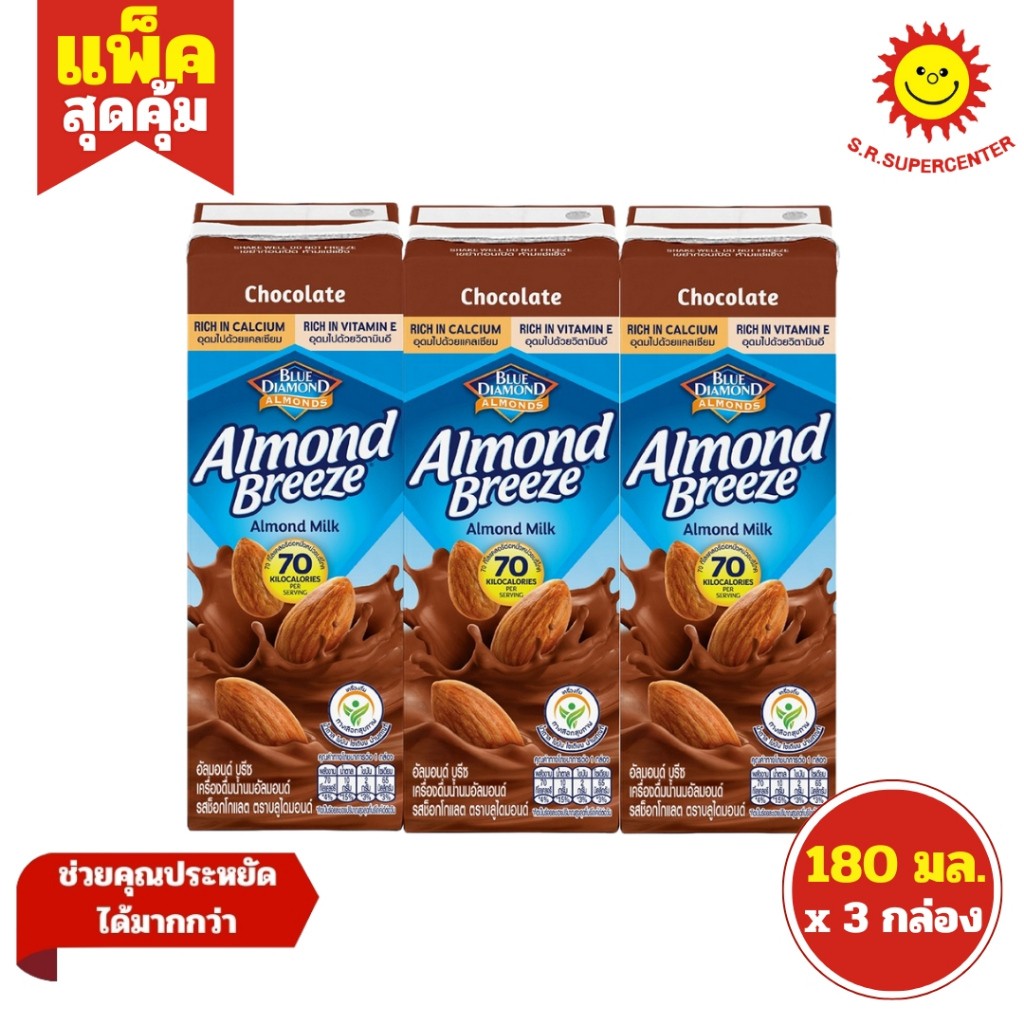 [ 1แพ็ค ] Blue Diamond บลูไดมอนด์ อัลมอนด์ บรีซ เครื่องดื่มนมอัลมอนด์ ขนาด 180 มล. (แพ็ค3กล่อง) 3 รสชาติ