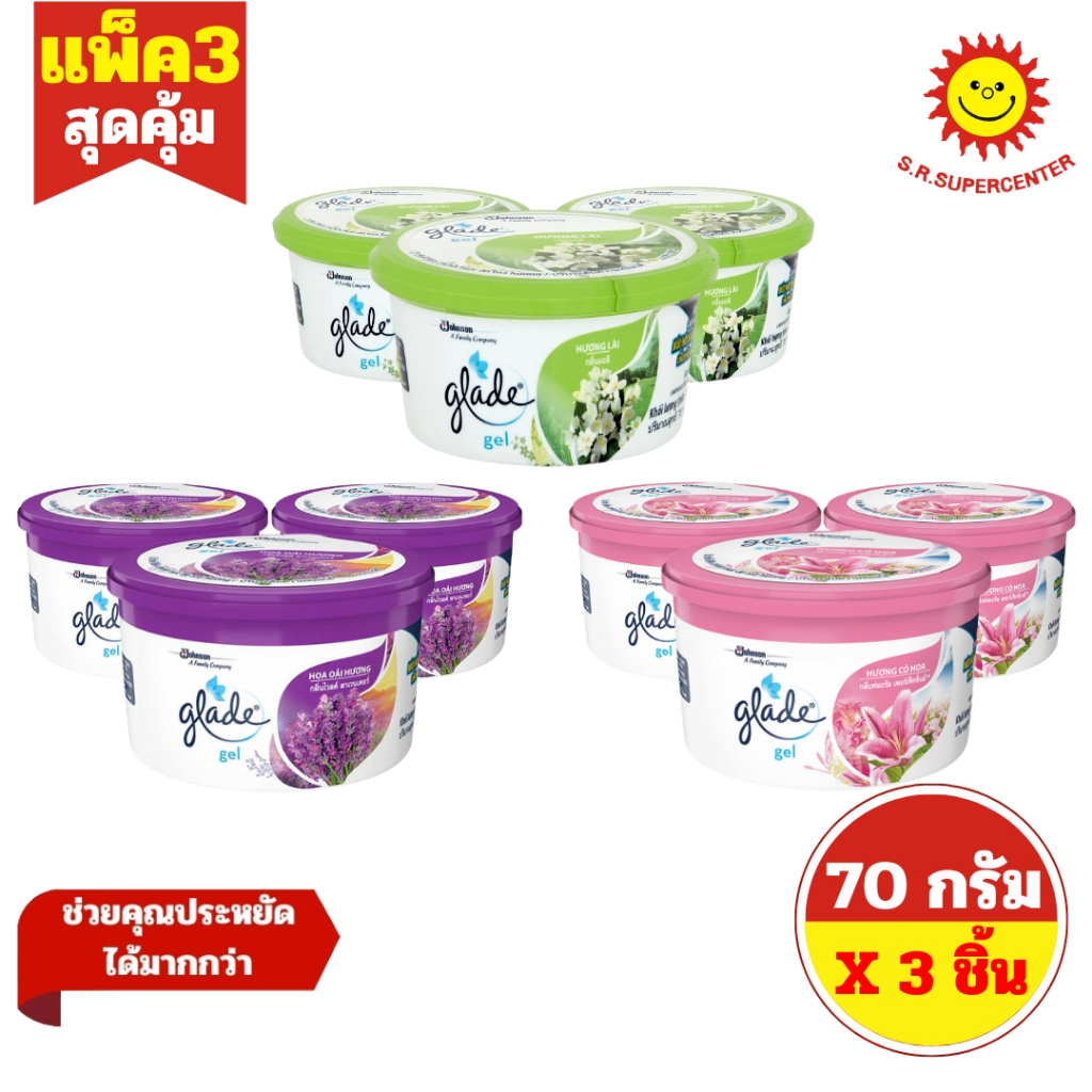[ แพ็ค 3 ] Glade เกลด เจลหอมปรับอากาศ ขจัดกลิ่นอับ ขนาด 70 กรัม (แพ็ค 3 ชิ้น) มี 3 กลิ่น