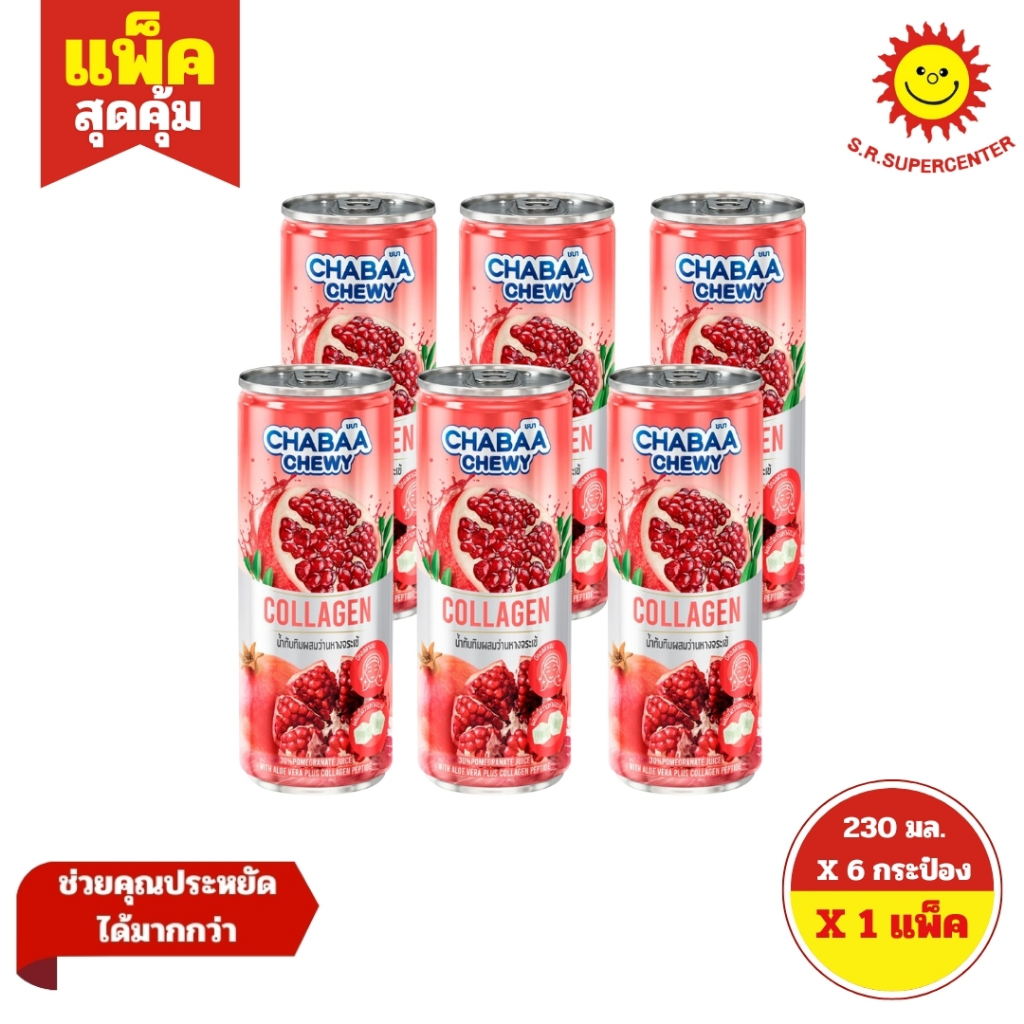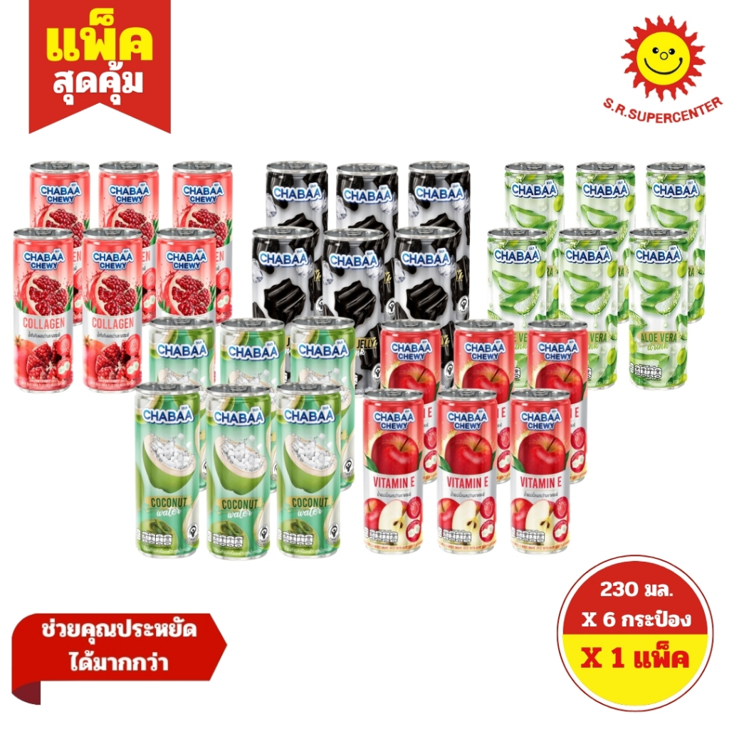 [ 1แพ็ค ] Chabaa ชบา น้ำผลไม้กระป๋อง ขนาด 230 มล. (แพ็ค6กระป๋อง) คละรสชาติ