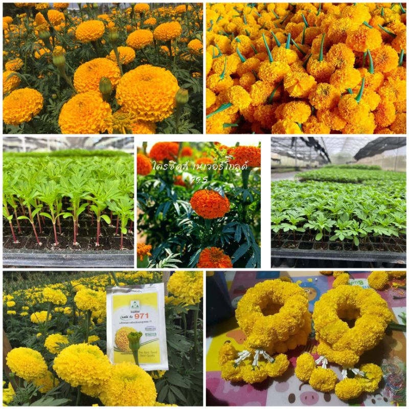 ต้นกล้าดาวเรืองดอกดกดอกใหญ่1ถาด200ต้นและแบบชุดเล็ก50ต้น