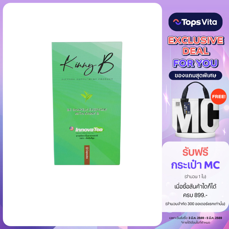 KINNY B คินนีบี 30แคปซูล ผลิตภัณฑ์เสริมอาหารลดน้ำหนัก [8859527600864]