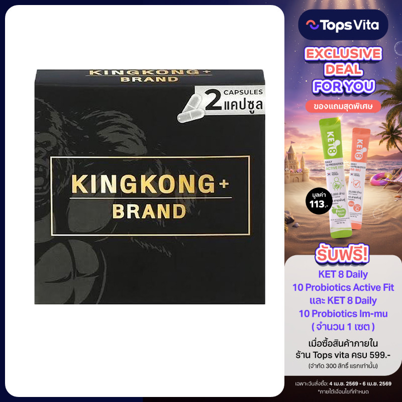 KINGKONG ผลิตภัณฑ์เสริมอาหาร ตรา คิงคอง+ 1.2 กรัม 2 แคปซูล [8859510000732]