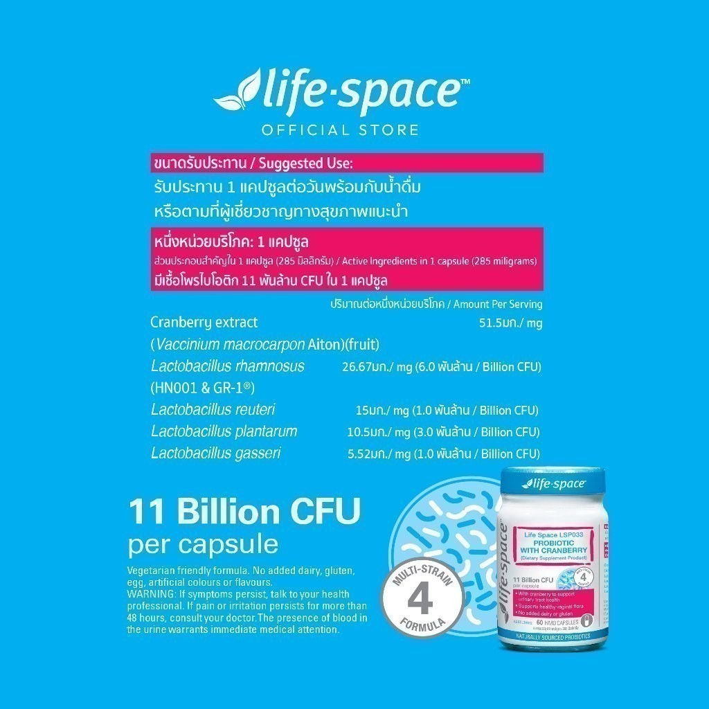 LIFE SPACE ไลฟ์สเปซ แอลเอสพี033 โพรไบโอติก วิท แครนเบอรี่ 11บิลเลียน 60 แคปซูล [9331927003616]
