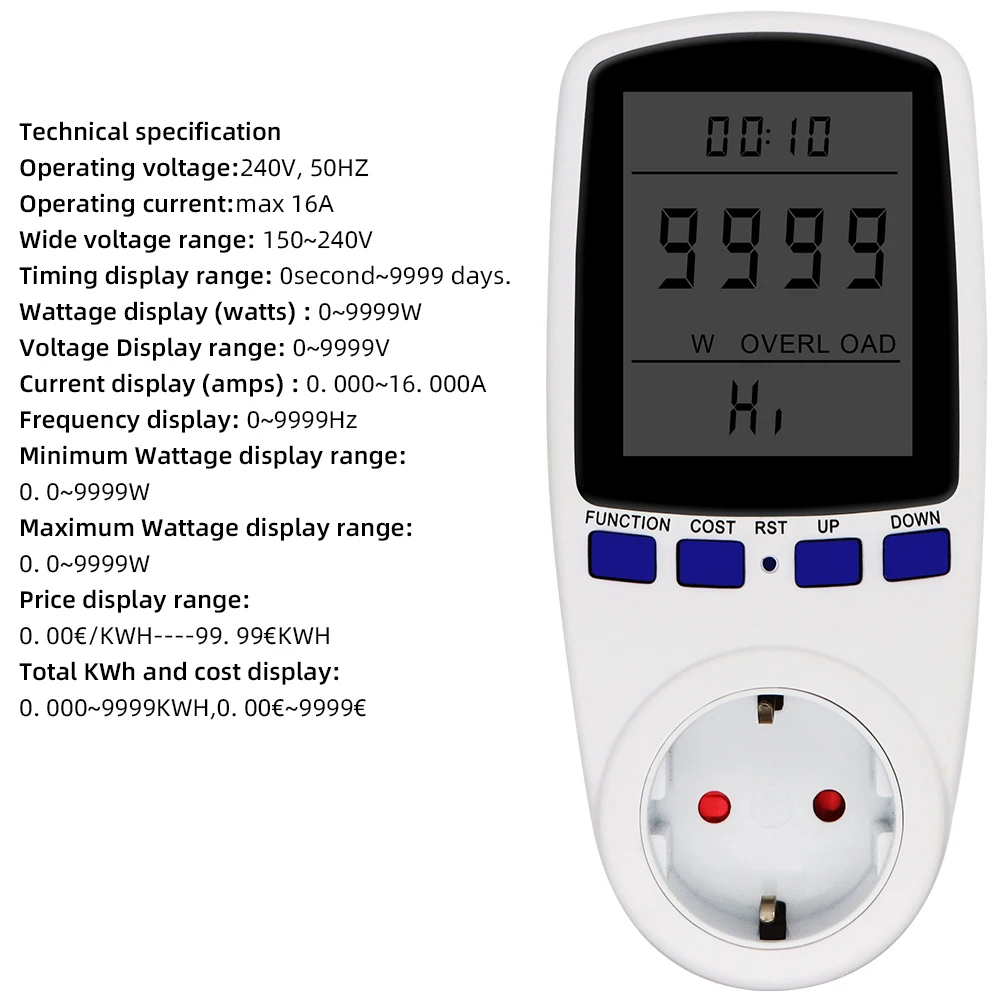 มิเตอร์ไฟฟ้าดิจิตอล 220V Wattmeter ซ็อกเก็ต US EU Kwh ปลั๊กไฟพลังงาน