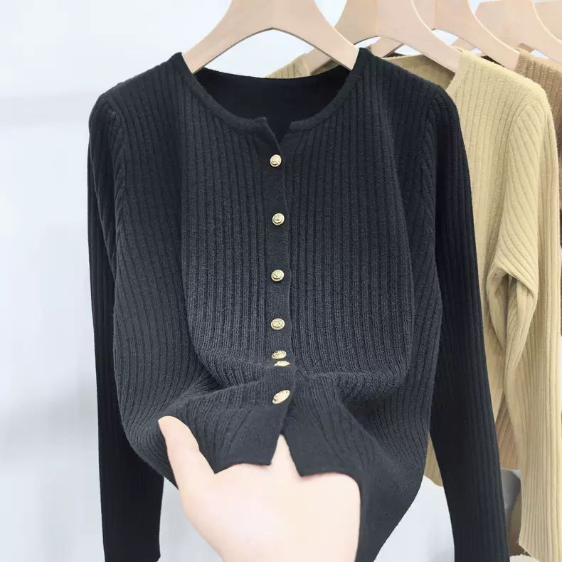 เสื้อคาร์ดิแกนถักผู้หญิงใหม่เสื้อกันหนาวแจ็คเก็ตแขนยาวด้านบน