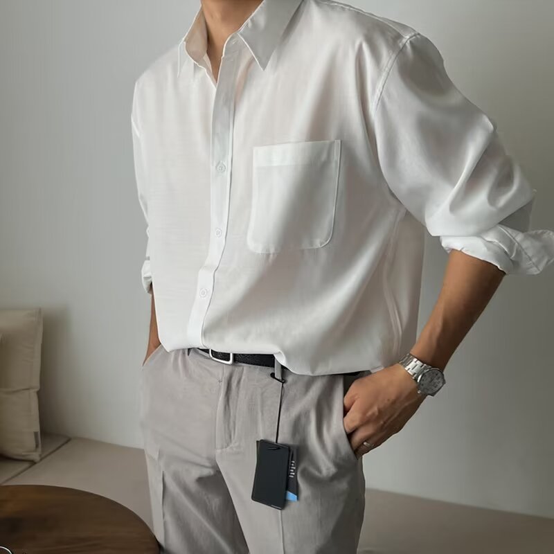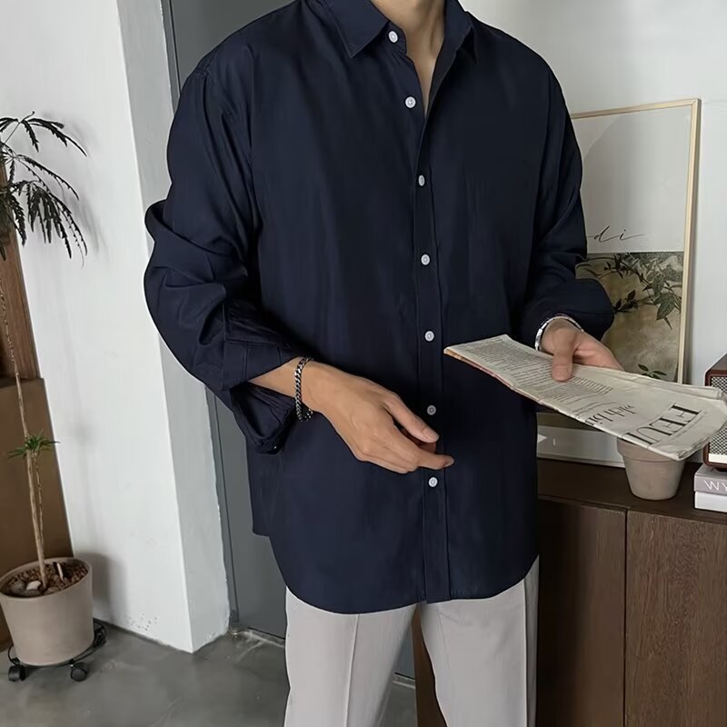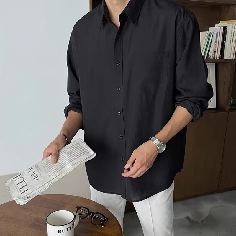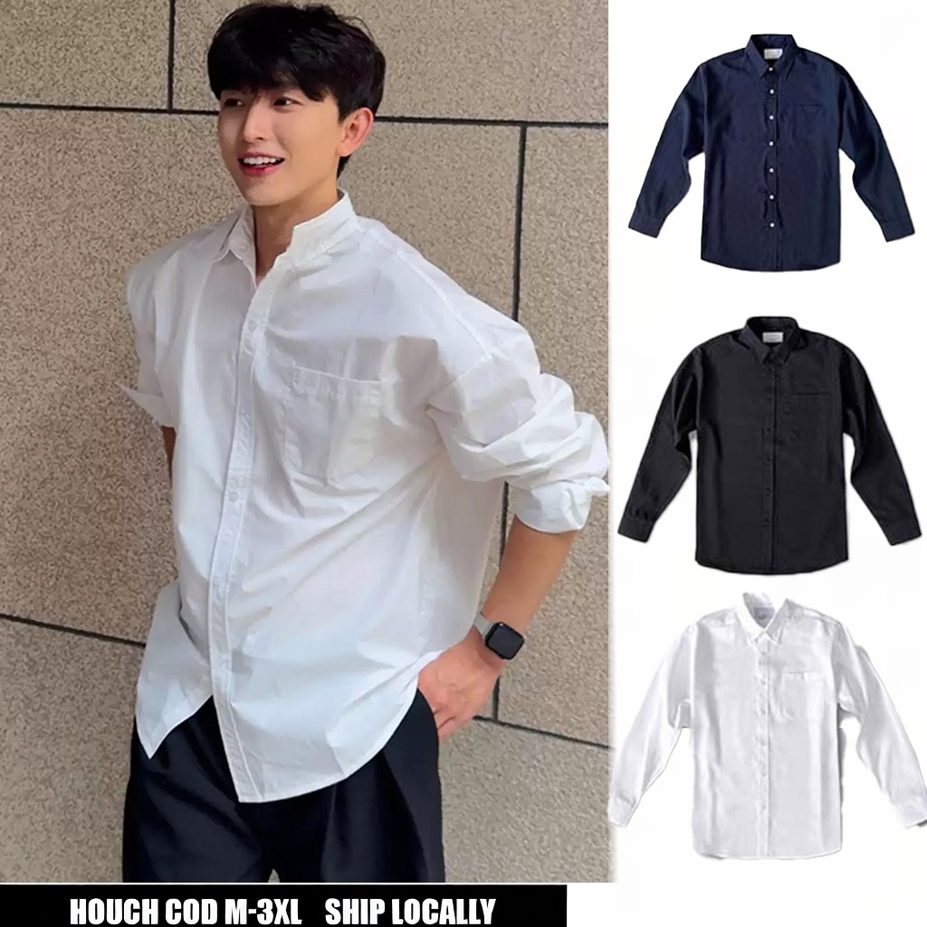 Houch พร้อมส่ง COD เสื้อเชิ้ตแขนยาวผู้ชาย เสื้อเชิ้ตแขนยาวธรรมดาเกาหลี เสื้อเชิ้ตกระดุม สบาย ไม่ยับง่าย