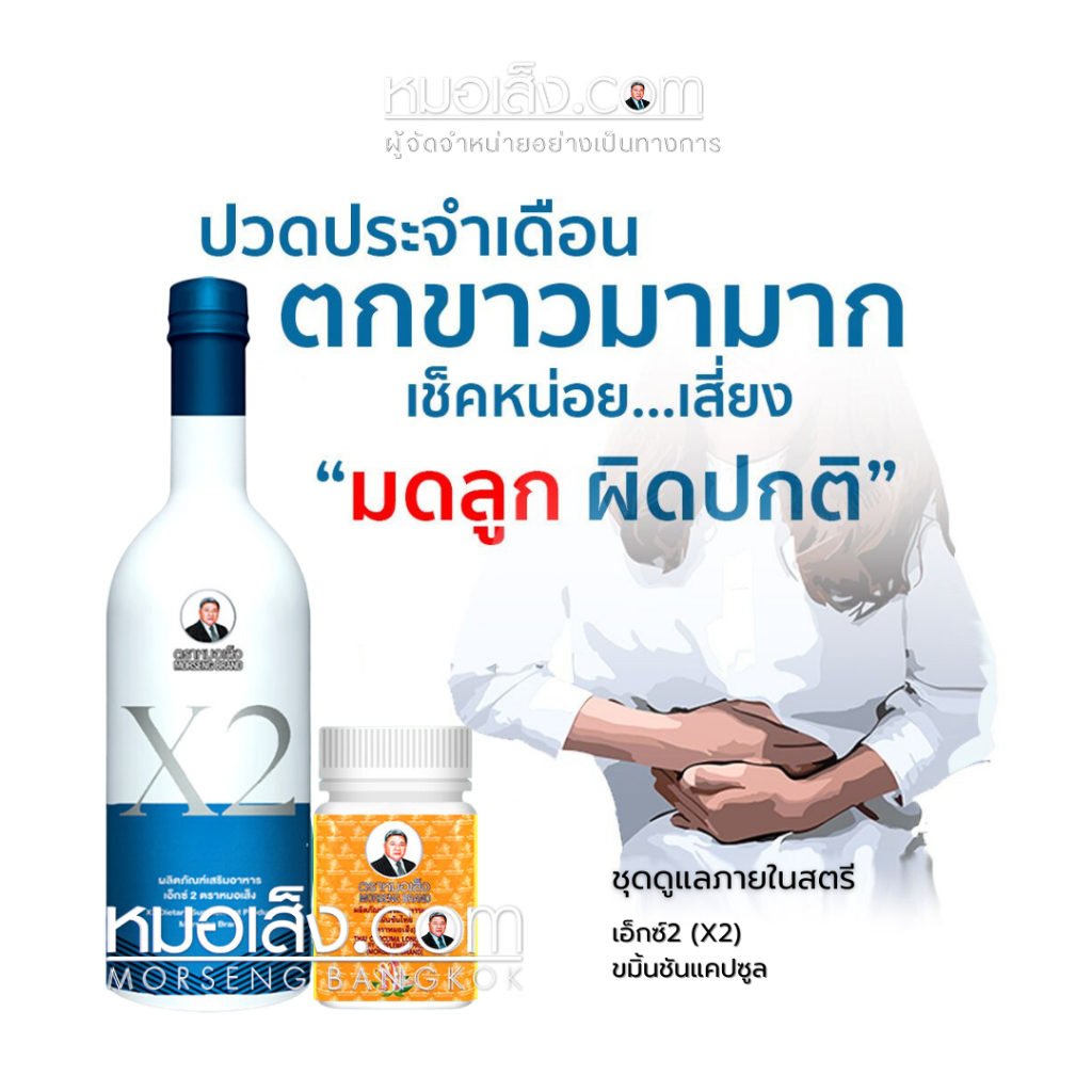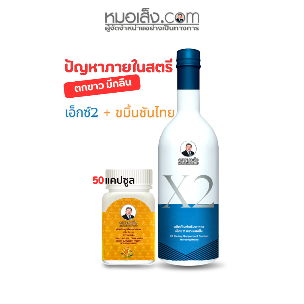 หมอเส็ง - (เอ็กซ์2+ขมิ้นชัน 50 แคปซูล) สำหรับสตรี ตกขาวติดเชื้อ คัน มีกลิ่น ปวดแสบปวดร้อนในช่องคลอด