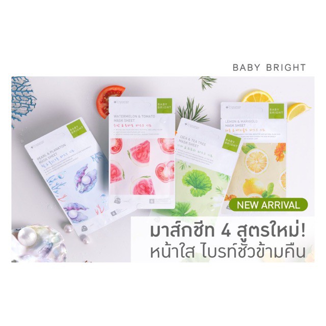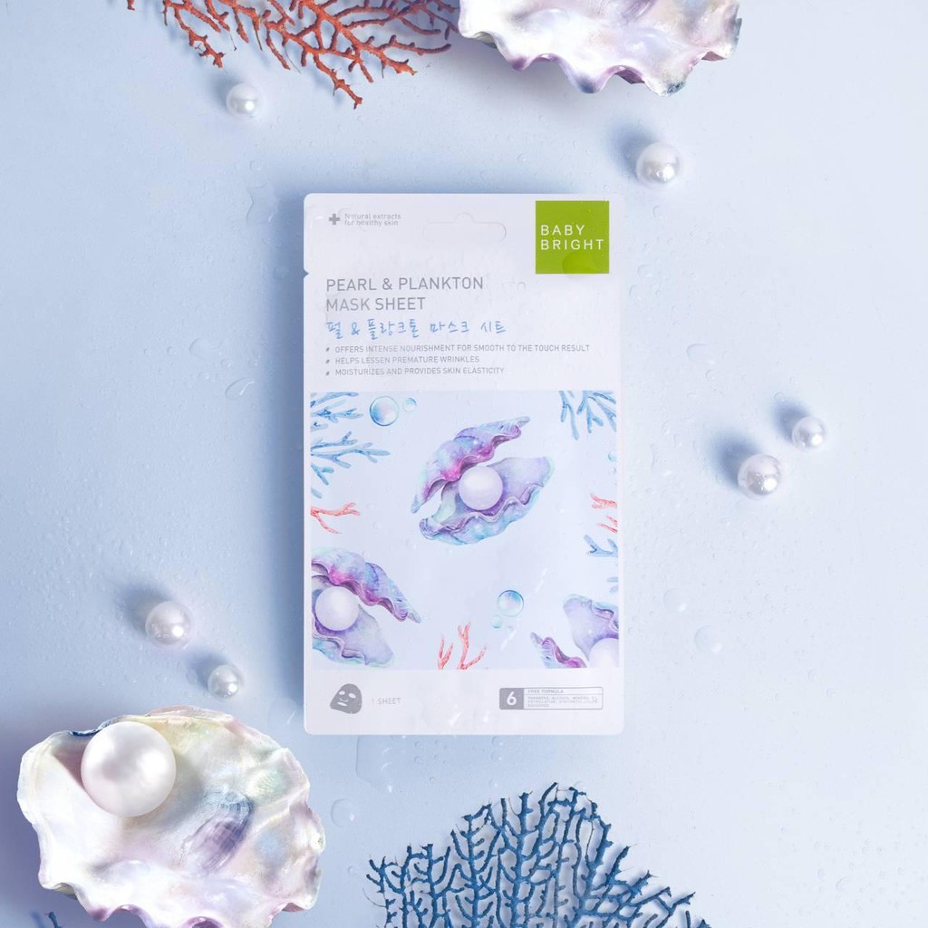 (6แผ่น/กล่อง) Baby Bright Essence Mask Sheet 20 g.เบบี้ไบร์ท เพิร์ลแอนด์แพลงตอนมาสก์ชีท มาร์คหน้า สูตรใหม่ !