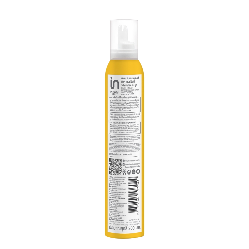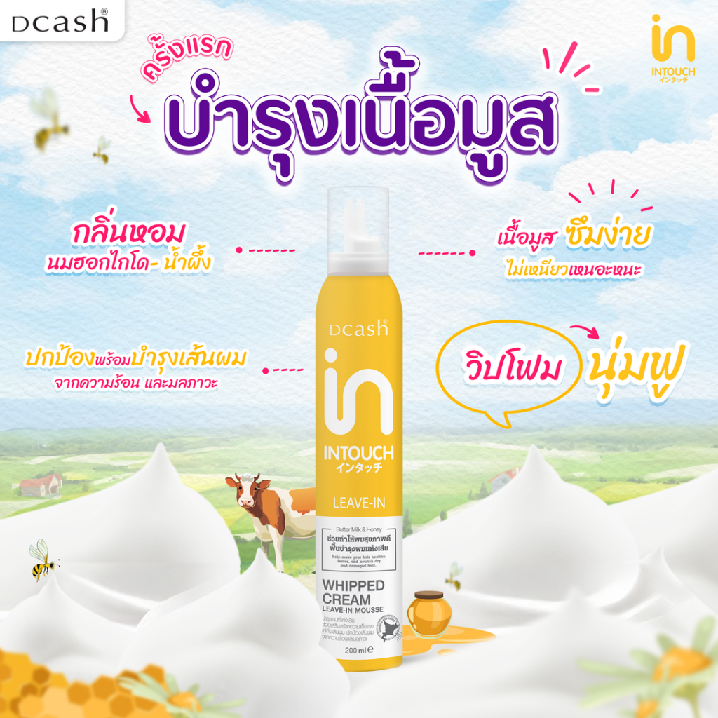 ดีแคช อินทัช วิป ครีม ลีฟ อิน มูส บำรุงผม วิปครีม (มูสบำรุงผมเนื้อวิปครีม) สีเหลือง