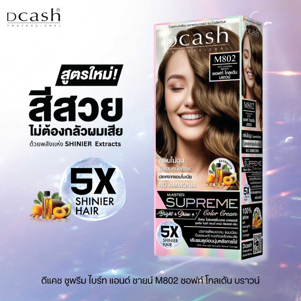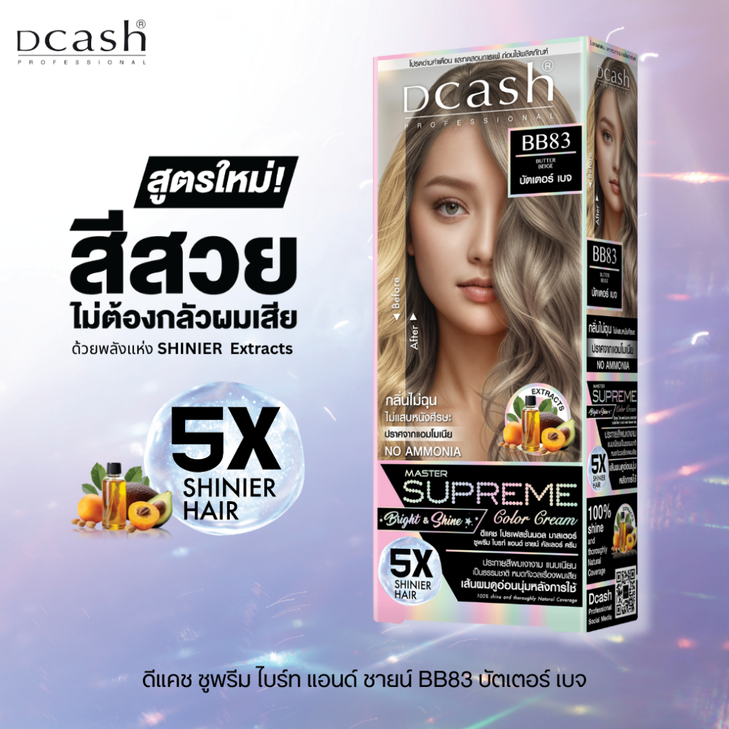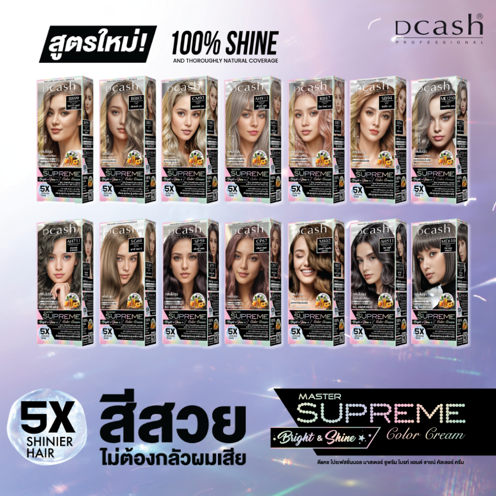[โทนสีแฟชั่น สูตรใหม่ 5X] ดีแคช มาสเตอร์ ซูพรีม ไบร์ท แอนด์ ชายน์ คัลเลอร์ครีม Dcash Supreme 5X (ครีมย้อมผม ยาย้อมผม)