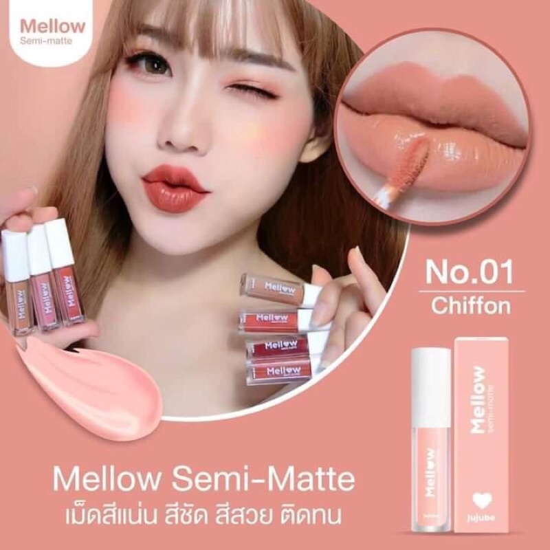 ลิปแมทเมลโล่ว Jujube Mellow semi-matte สีสวยติดทนนานปากไม่ดำมีบำรุง