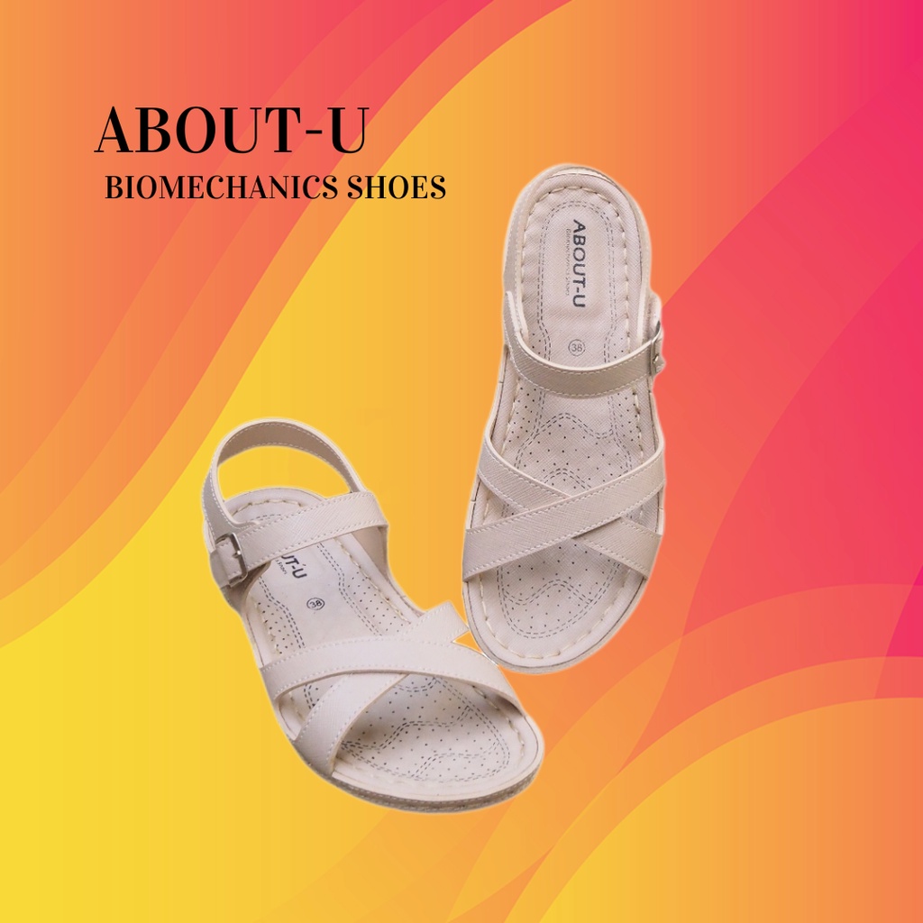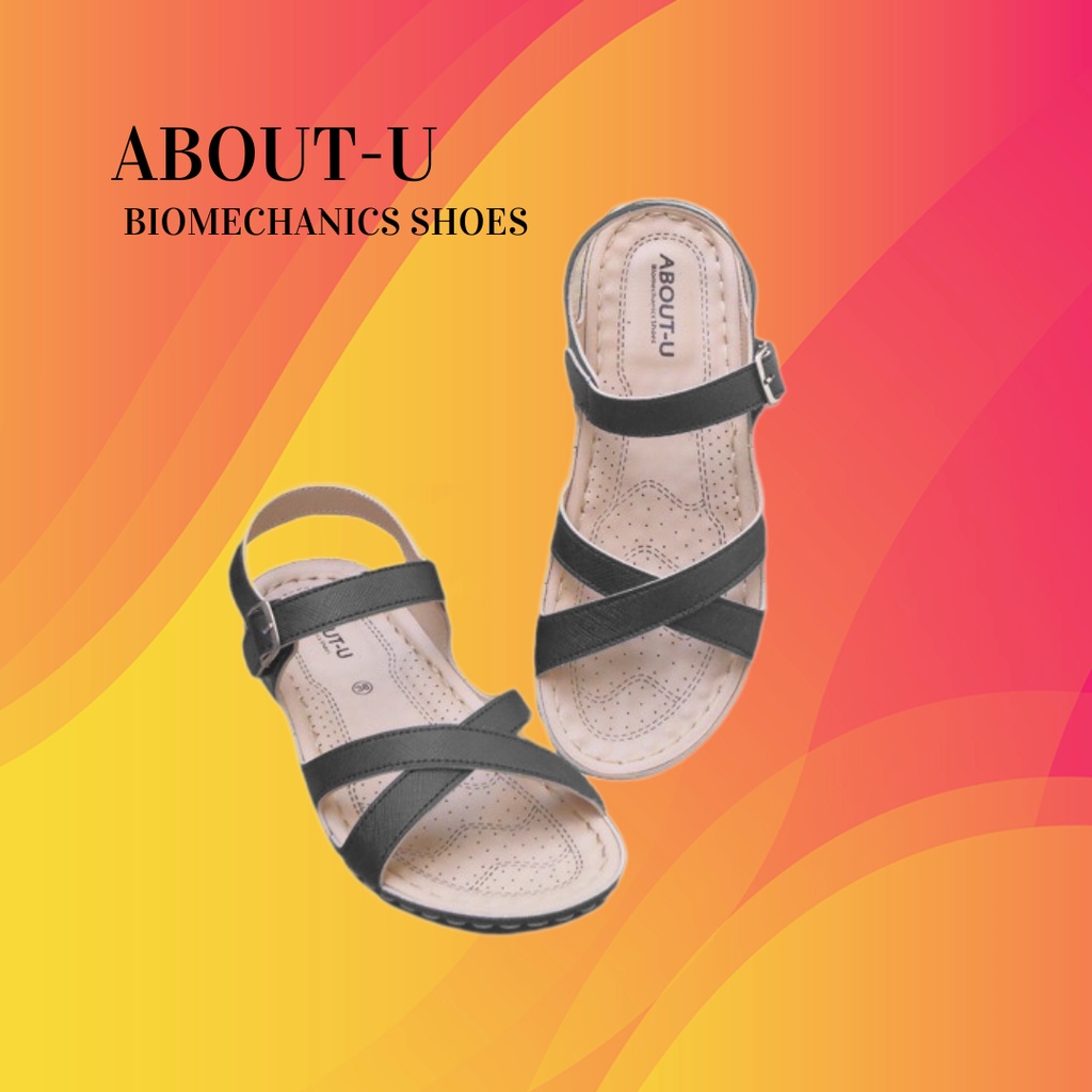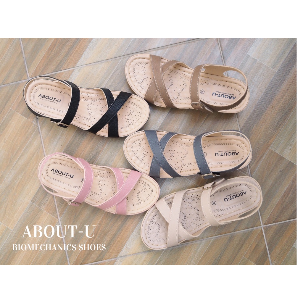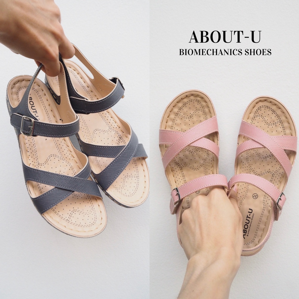 ABOUT-U รองเท้าเพื่อสุขภาพผู้หญิง รัดส้น (ตีนตุ๊กแก) ใส่สบาย น้ำหนักเบา เย็บรอบ ใช้ทน กันน้ำ กันลื่น รุ่นSlim Cross