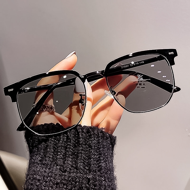 [จัดส่งรวดเร็ว]แฟชั่นใหม่แว่นตาป้องกันแสงสีฟ้าสำหรับผู้ชาย,แว่นตาครึ่งกรอบแบน,กรอบแว่นตา,แว่นตาสายตาสั้นของผู้หญิง,สไตล์