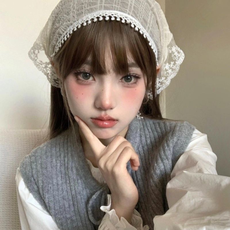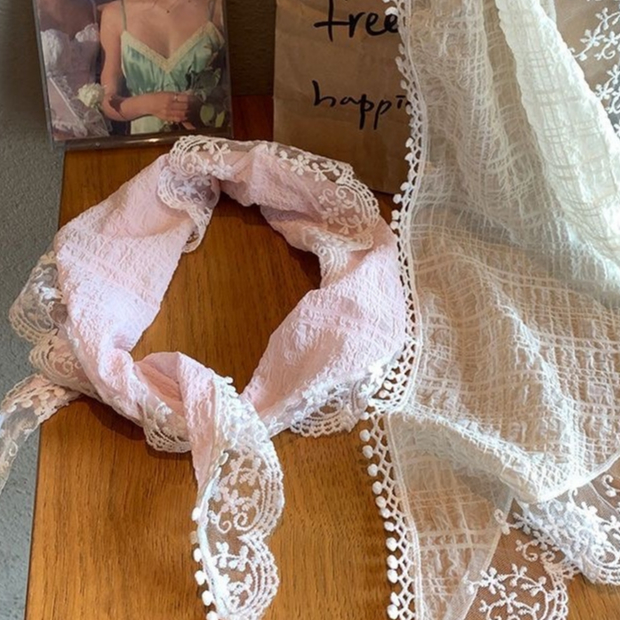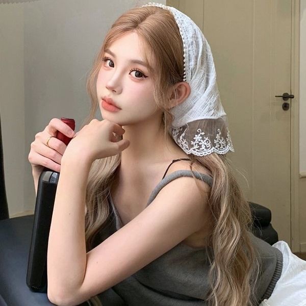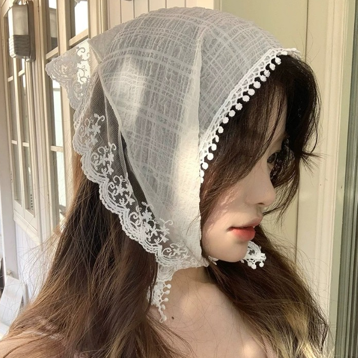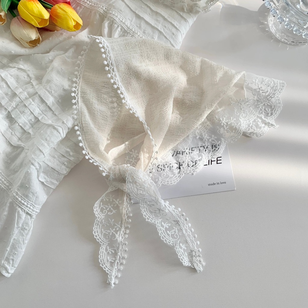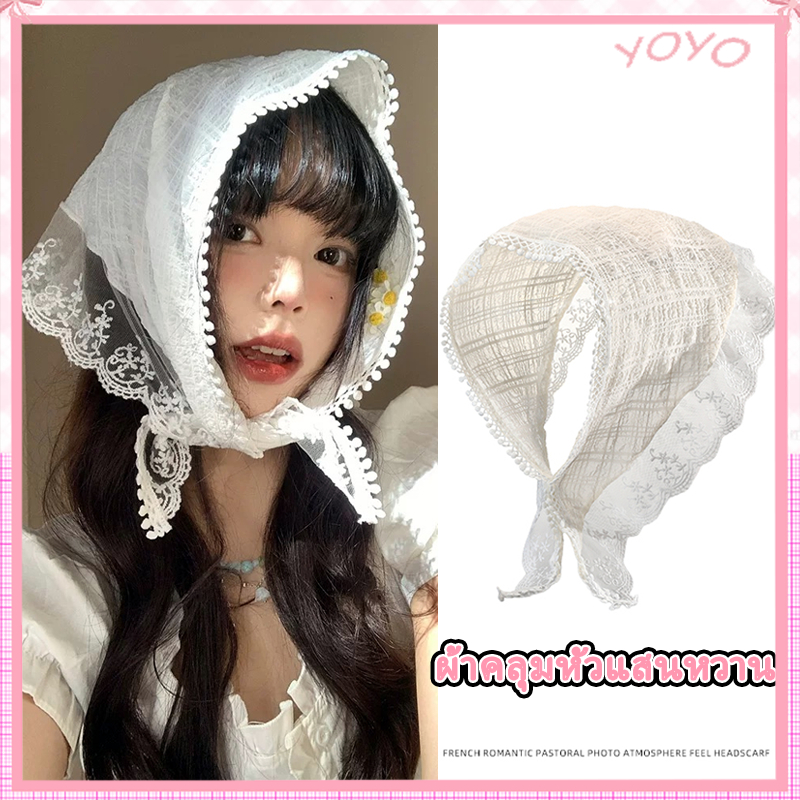 [การจัดส่งอย่างรวดเร็ว] ที่คาดผมทรงสามเหลี่ยมลูกไม้ผู้หญิงฤดูร้อนดอกไม้ฝรั่งเศสที่คาดผมย้อนยุคน่ารักหวานสไตล์ Pastoral ท
