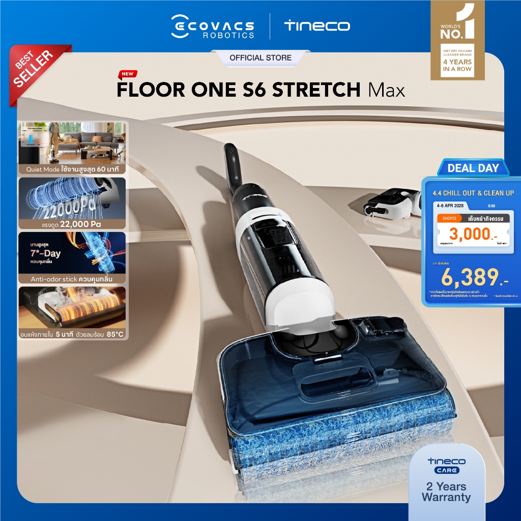 New 2026! Tineco FLOOR ONE S6 Stretch Max - Floor Washer พลังดูด 22,000 Pa มาพร้อมแท่งกำจัดกลิ่นน้ำเสีย
