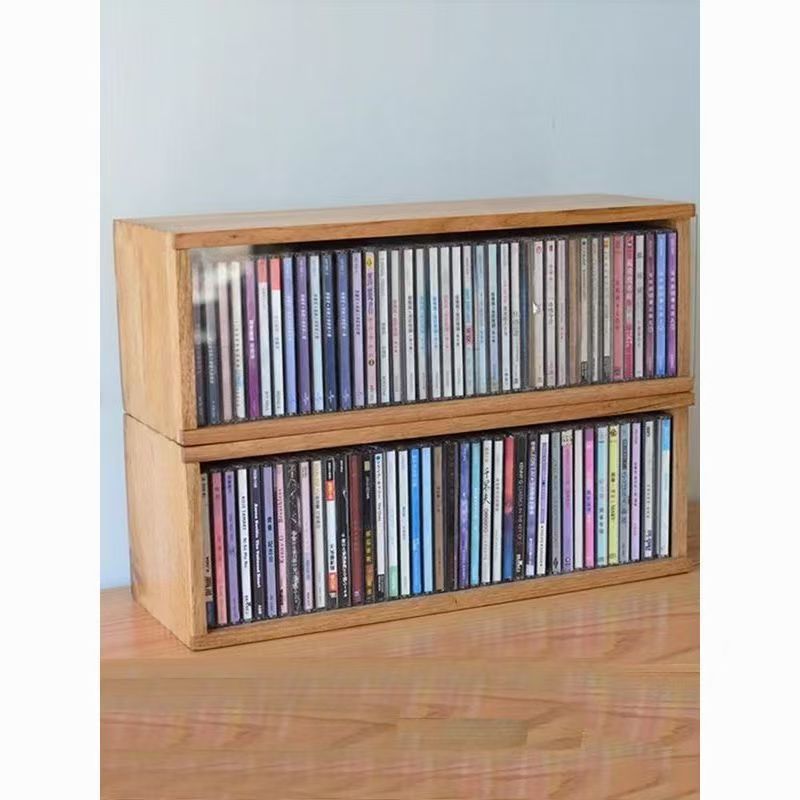 ★-☀ไม้เนื้อแข็งชั้นเก็บแผ่นเสียงกล่องเก็บซีดีไข้ซีดีกล่องเก็บฝุ่นแผ่น PS4 สามารถเก็บชั้นวางได้ 45 ชั้น